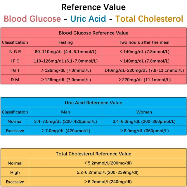 This meter has three units: mg/dL, mmol/L and μmol/L. You can use the unit switching code card to set the unit you want in the meter according to your habits. If you are used to using mmol/L, you can set it to mmol/L. If you are used to using mg/dL, you can set it to mg/dL.