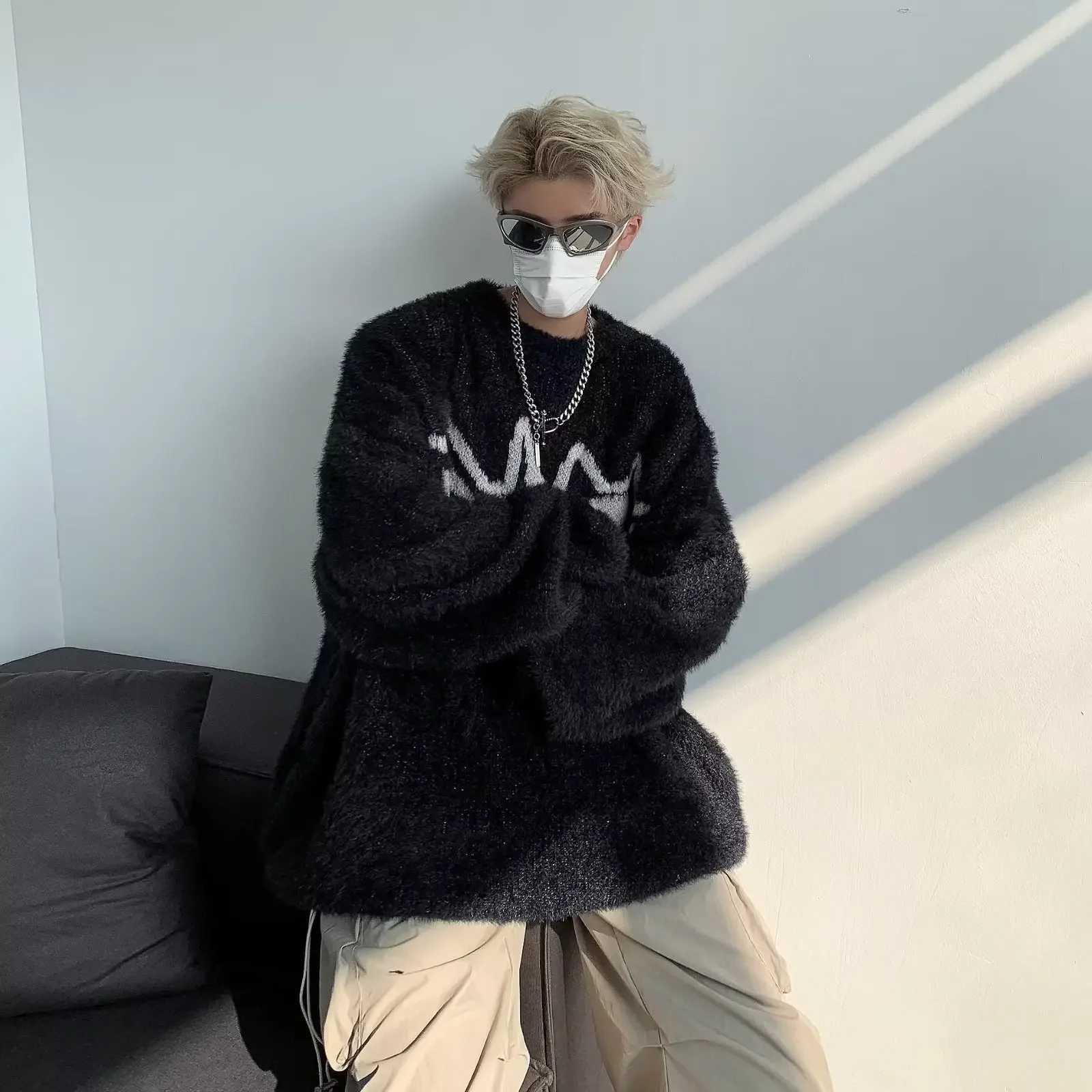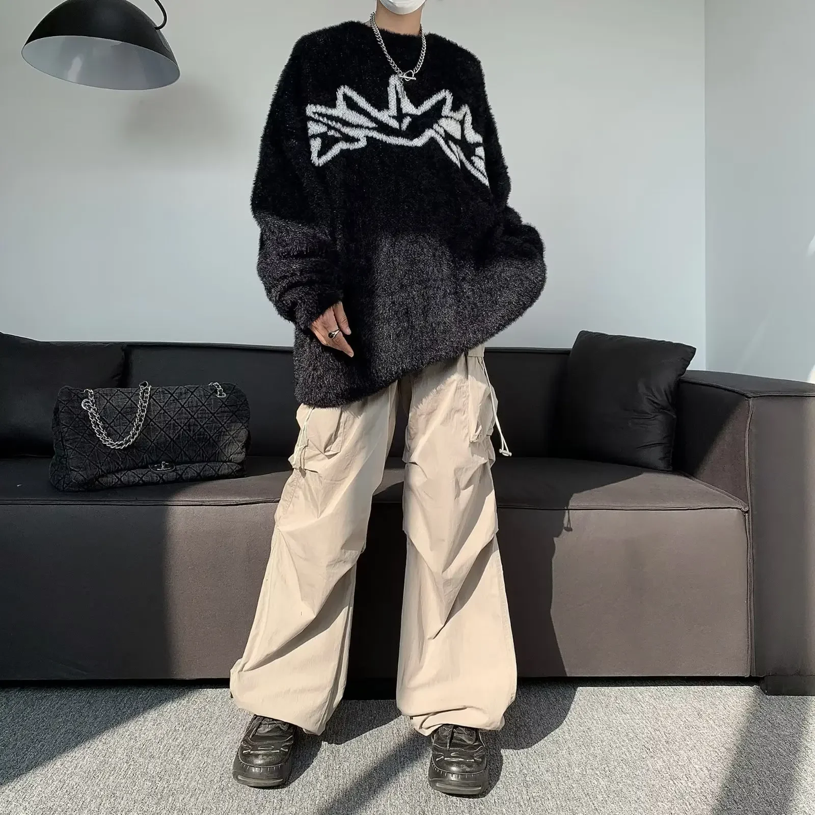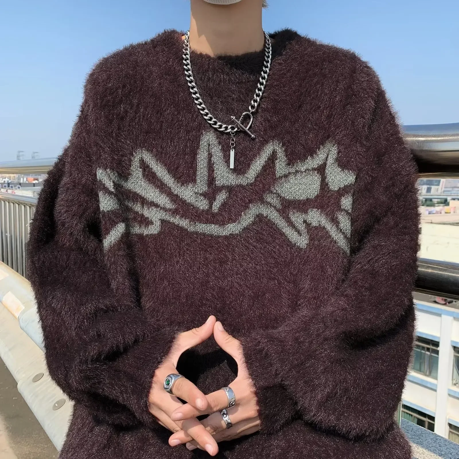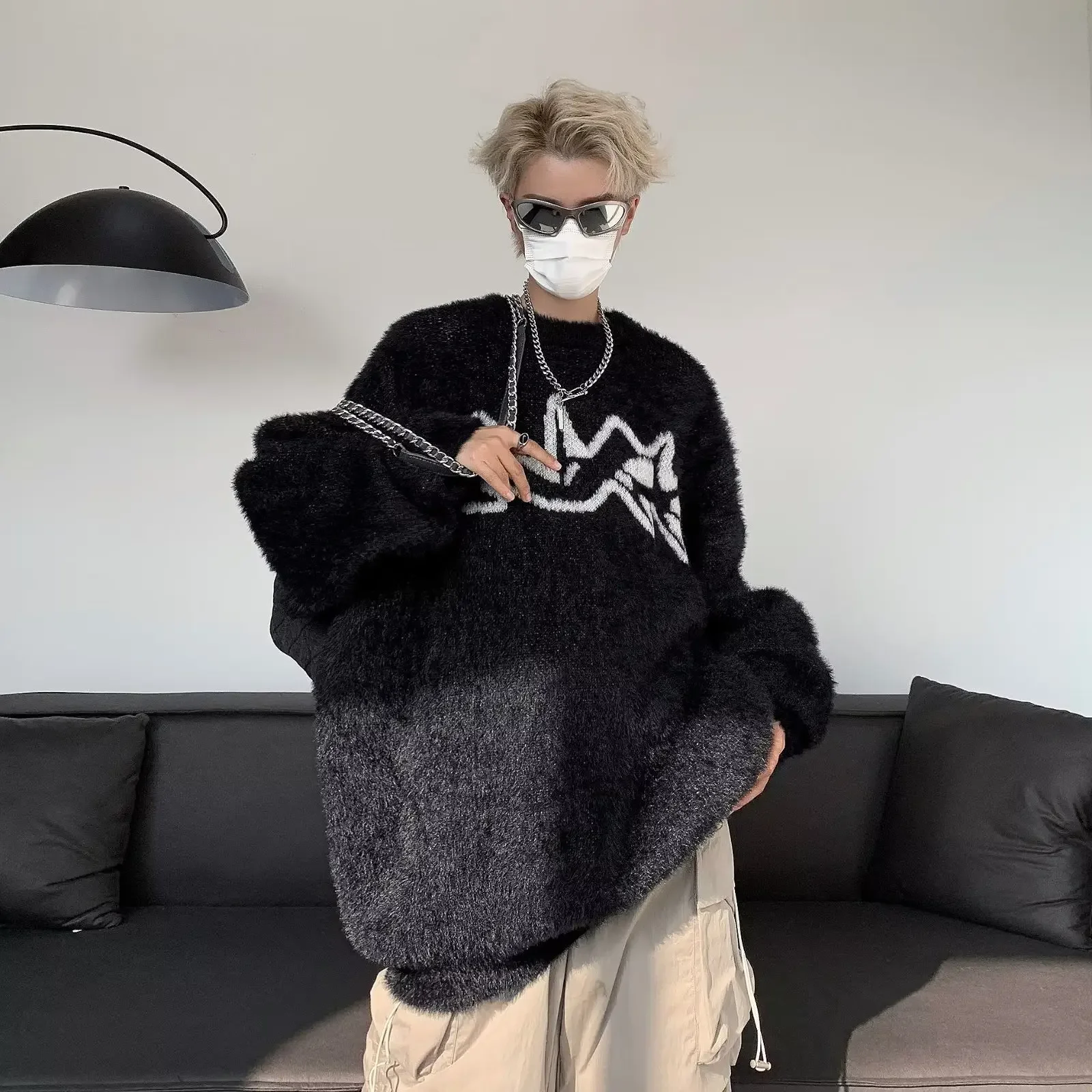 GuoTrendy Loose-Fit Round Neck Sweater Men’s Casual Vintage Streetwear Oversize Japanese Style
