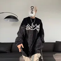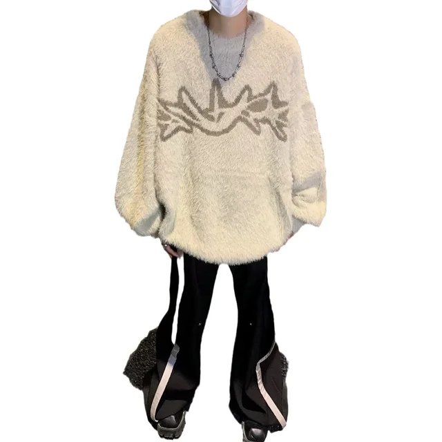 GuoTrendy Loose-Fit Round Neck Sweater Men’s Casual Vintage Streetwear Oversize Japanese Style