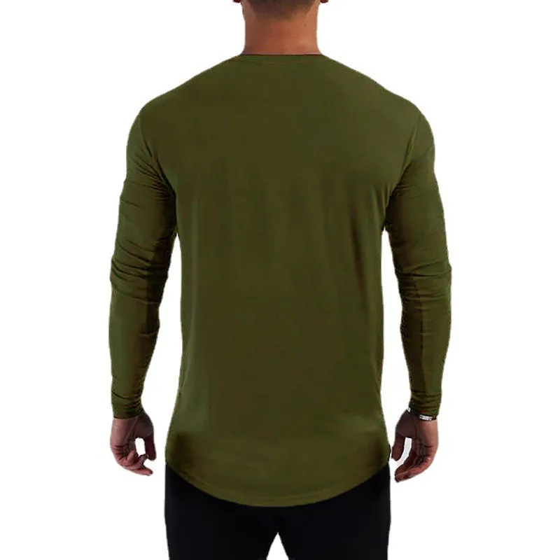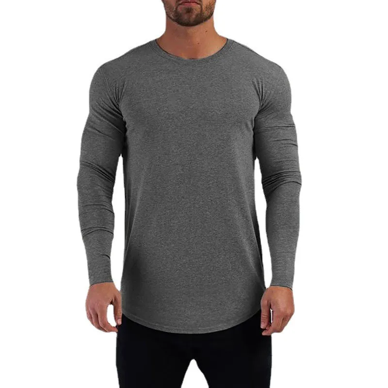 Gym Fitness Running Sport T-shirt Mens Slim Fit Long Sleeve Cotton Autumn Shirt Breathable Workout Muscle