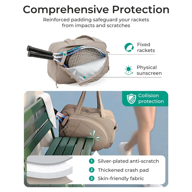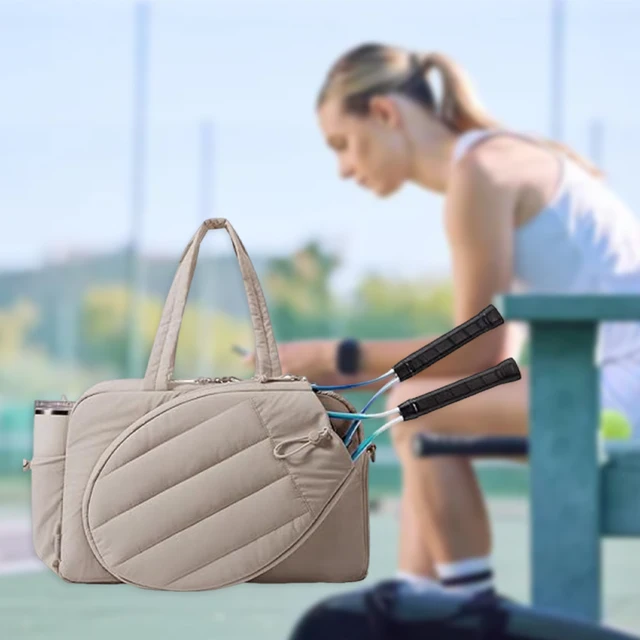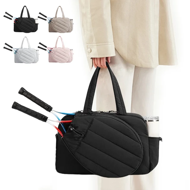 1.Vibrant Women’s Gym Tennis Bag: Our stylish tote is designed for women with a dedicated front compartment to securely hold 2 rackets, making it for matches or practice. The lining protects your gear, and quick-access side pockets store tennis balls and essentials effortlessly. Transition seamlessly from court to cafe with this fashionable and versatile tennis tote bag.