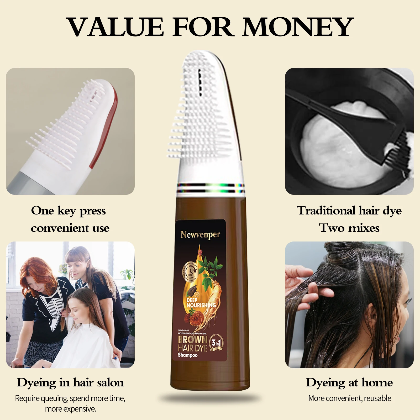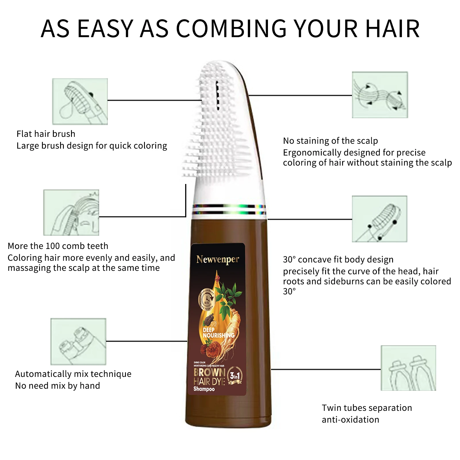 Original price was: 15.05$.6.76$Current price is: 6.76$.Hair Color Shampoo with Hair Brush Instant Hair Dye Shampoo Hair Coloring in Minutes Natural and Long