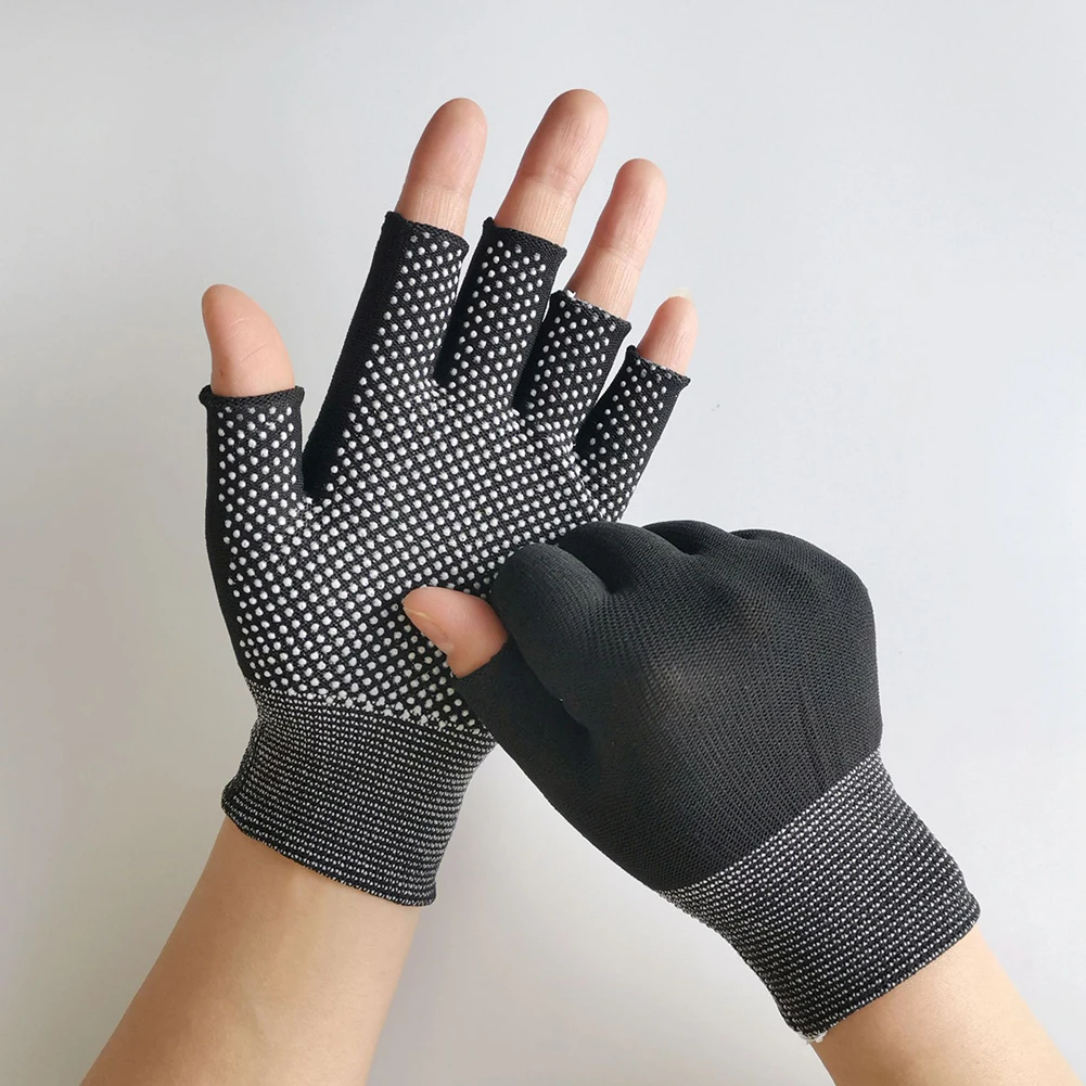 Half Finger Cycling Gloves Breathable Fishing Gloves Non-slip Nylon Gym Gloves Workout Mittens for Cycling Fishing Driving