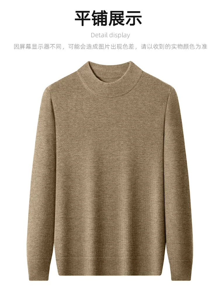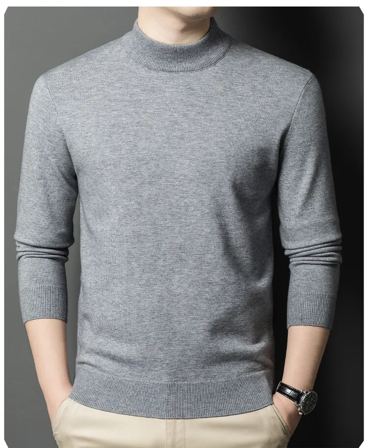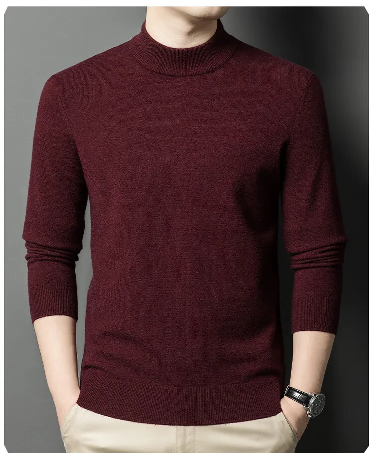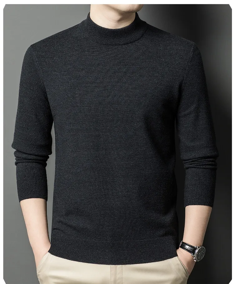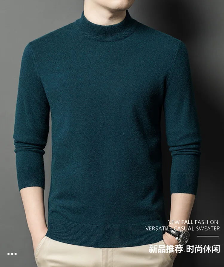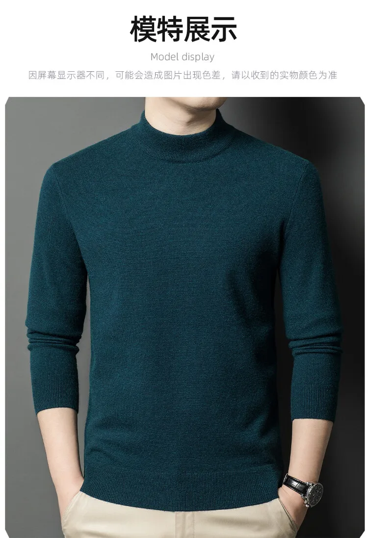 Half-high Collar Slim-fit Basic Solid Color Men’s Warm Autumn and Winter Sweater, Daily Casual