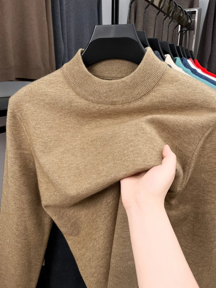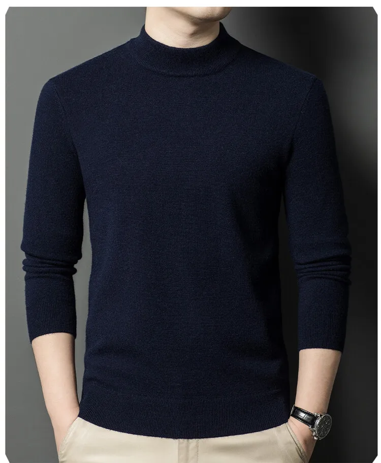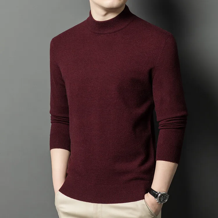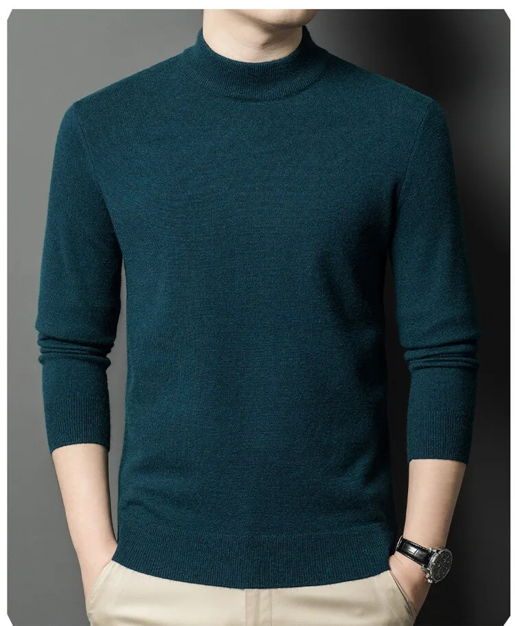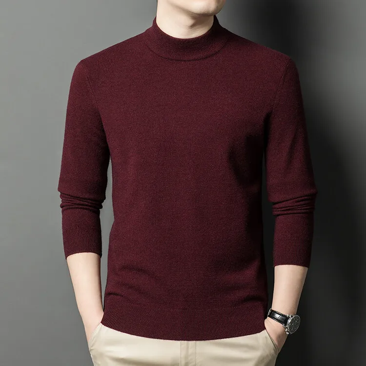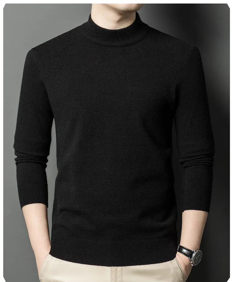 Half-high Collar Slim-fit Basic Solid Color Men’s Warm Autumn and Winter Sweater, Daily Casual