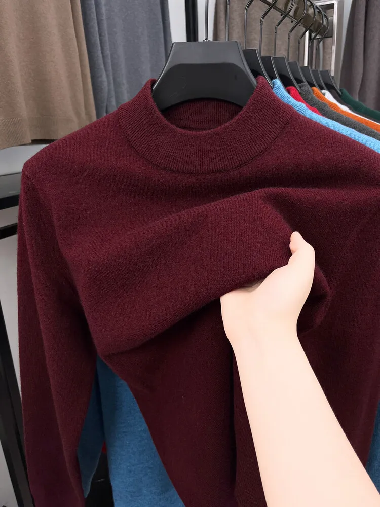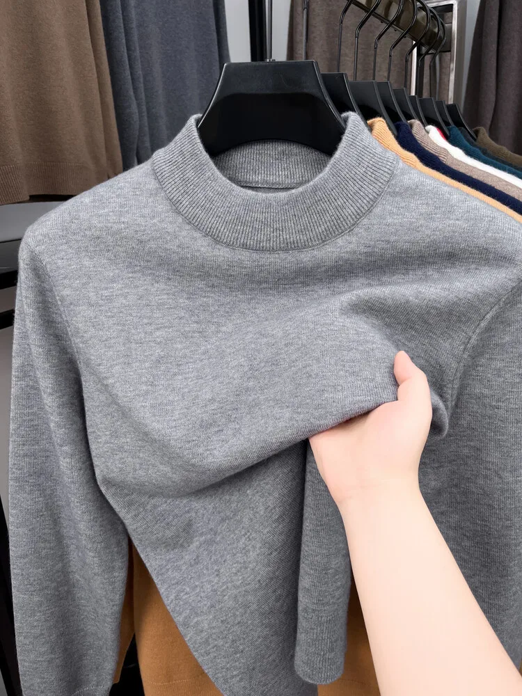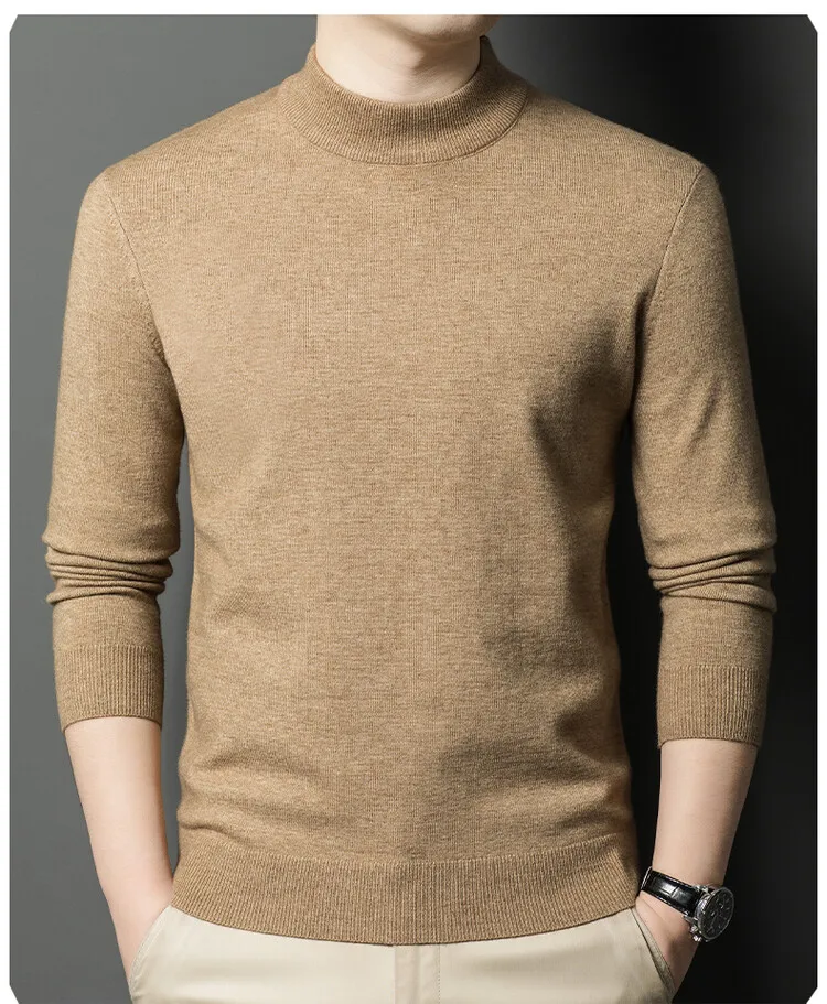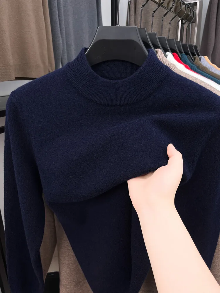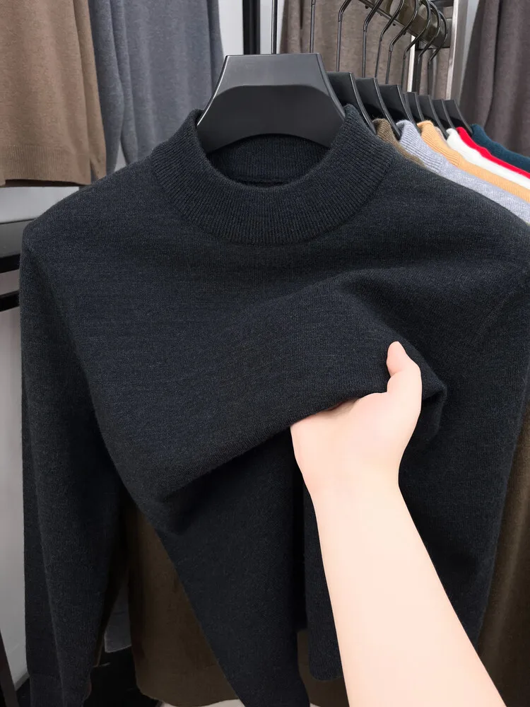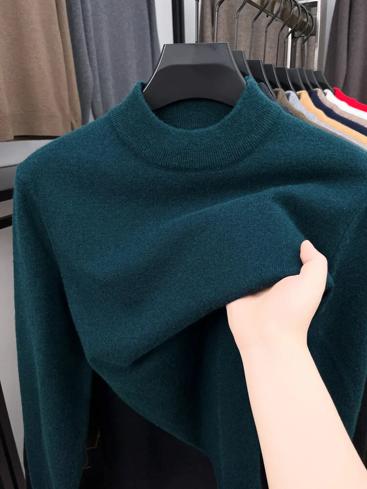 Half-high Collar Slim-fit Basic Solid Color Men’s Warm Autumn and Winter Sweater, Daily Casual
