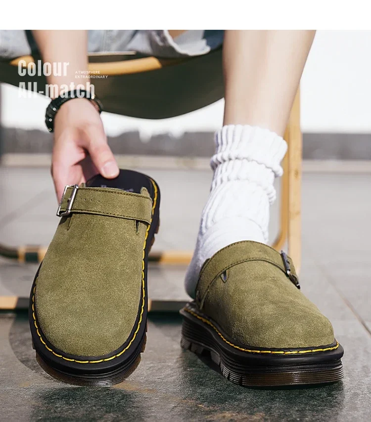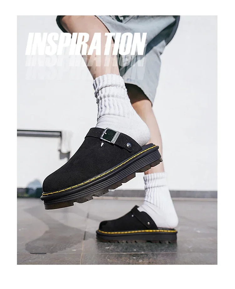 Half Slippers for Men Classic Clogs Shoes Slippers Men Fashion Big Leather Casual Slippers Non Slip Beach