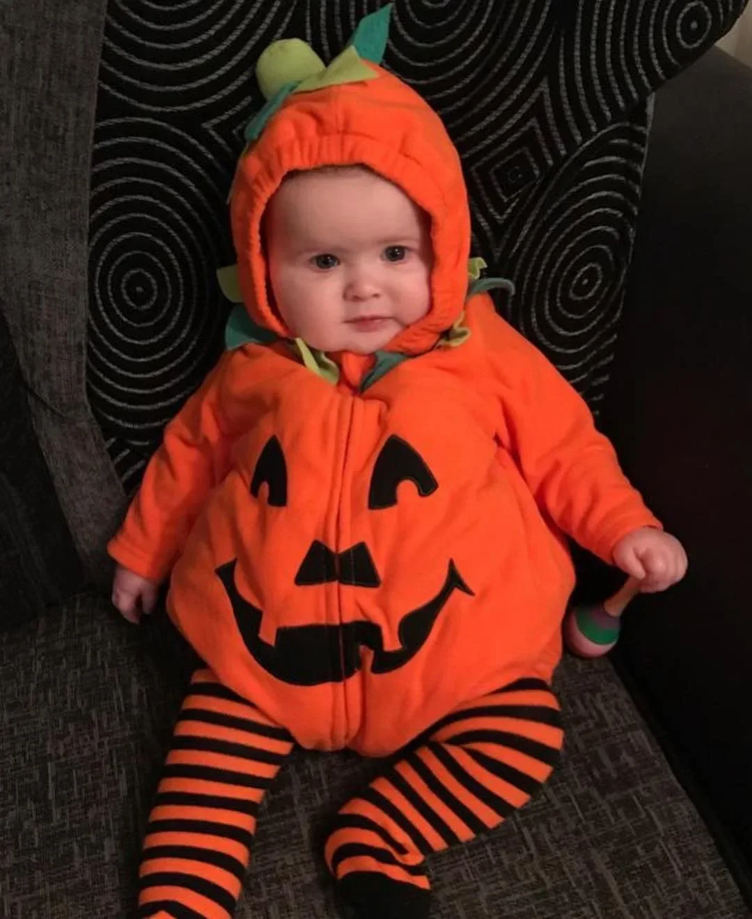 Halloween Baby Girls Boy Cosplay Pumpkin Costume Set Fleece Hooded Striped Pants 2Piece Outfits for 0-12M