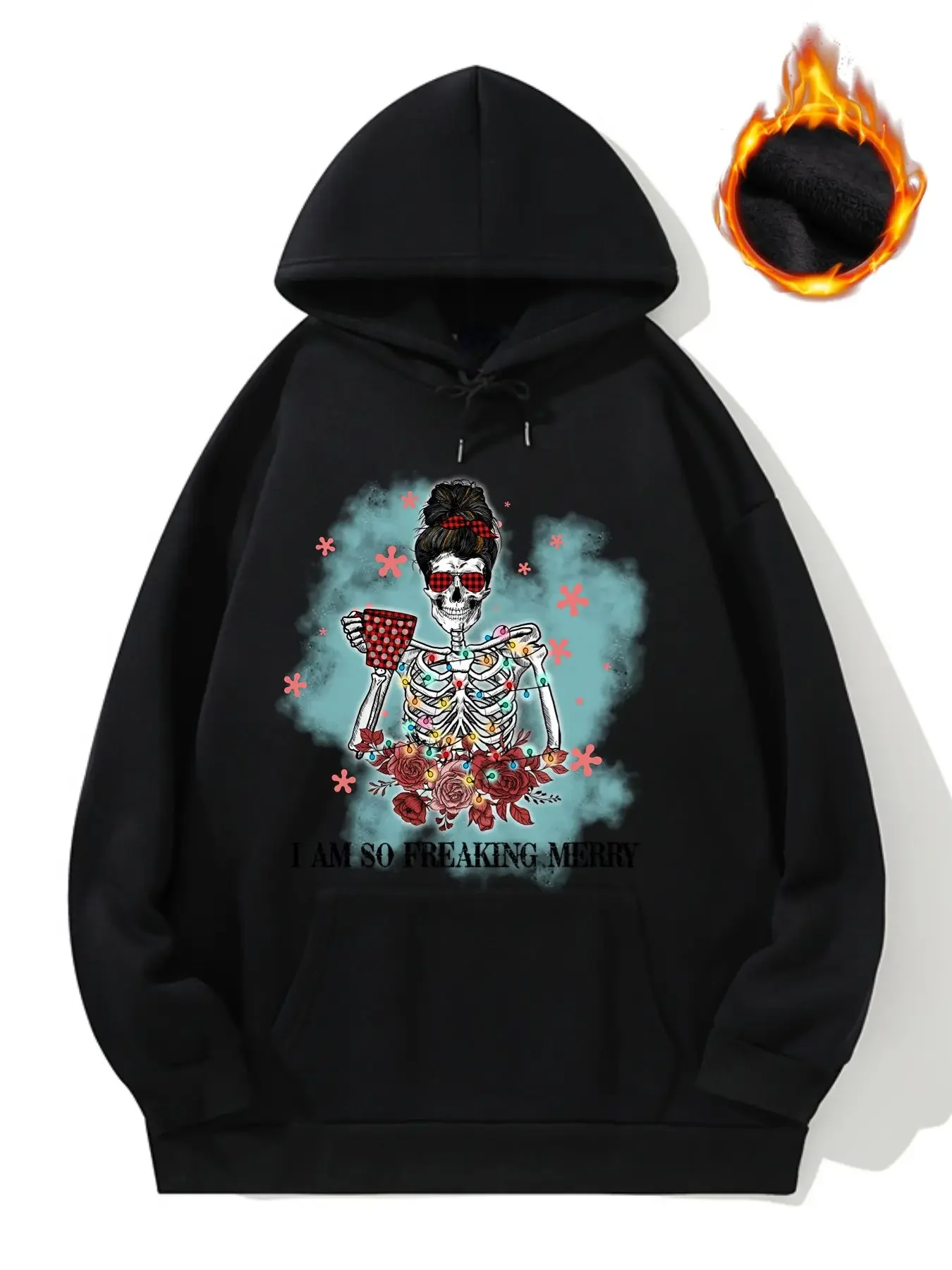 Christmas Santa Skull Women Plus Size Tops Sport Pullover Hoodie Oversize Fleece Hoodies and Sweatshirt Big Size Hood Sweatshirt