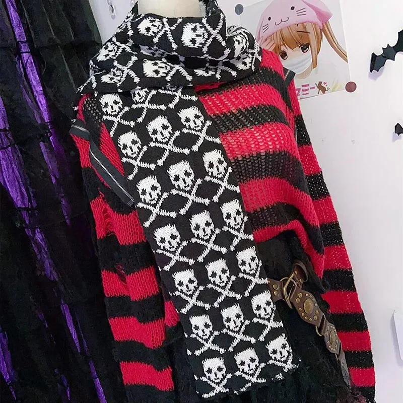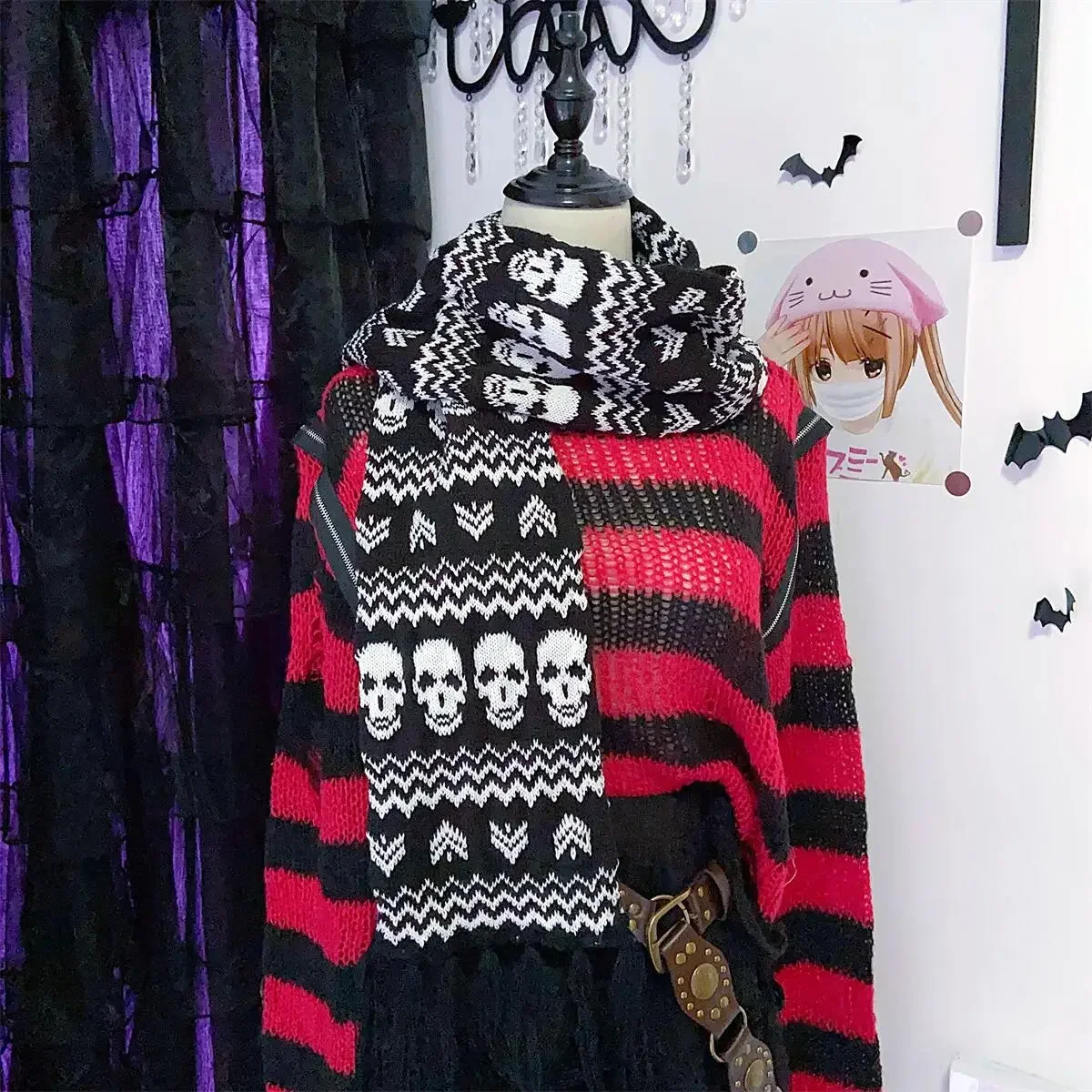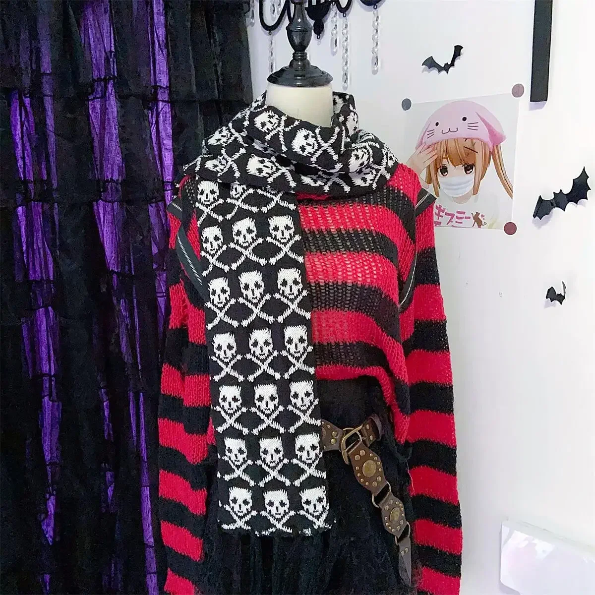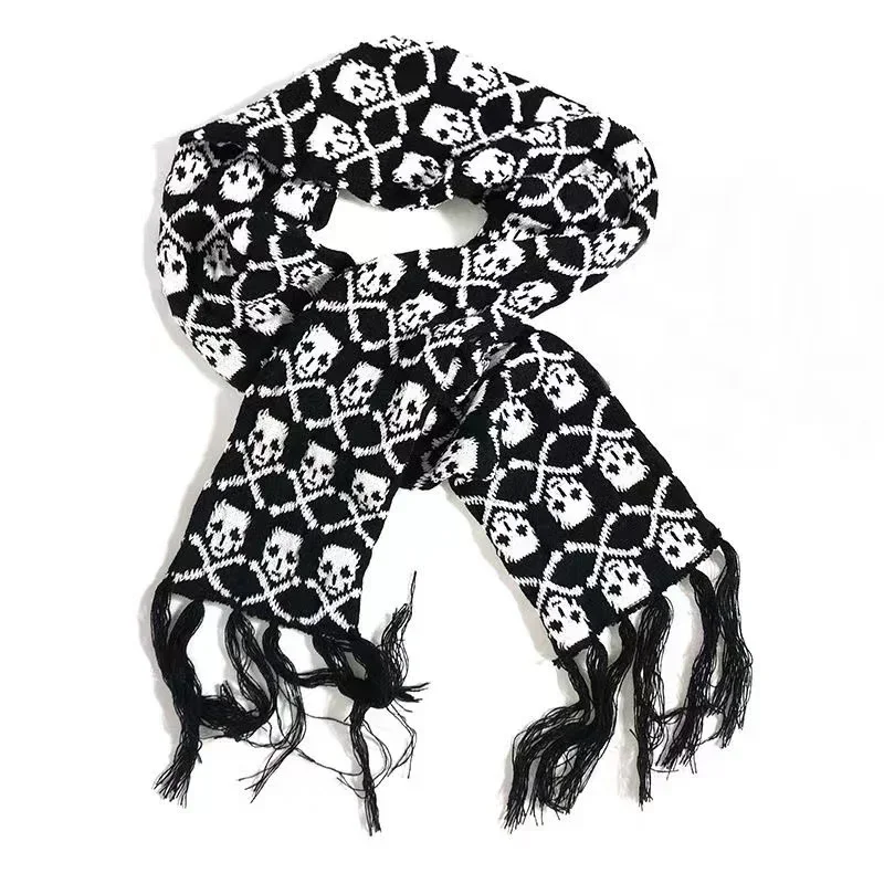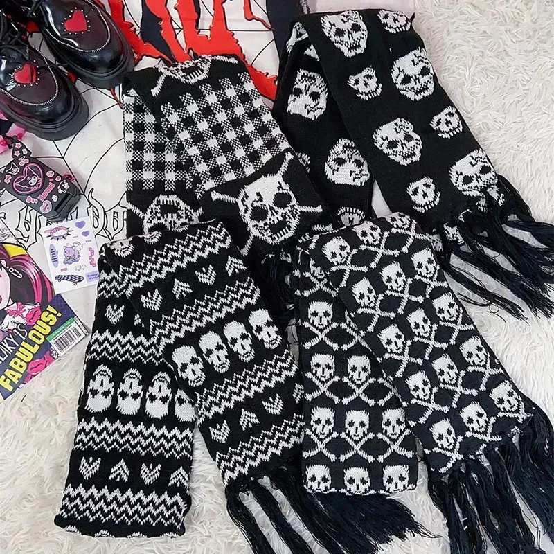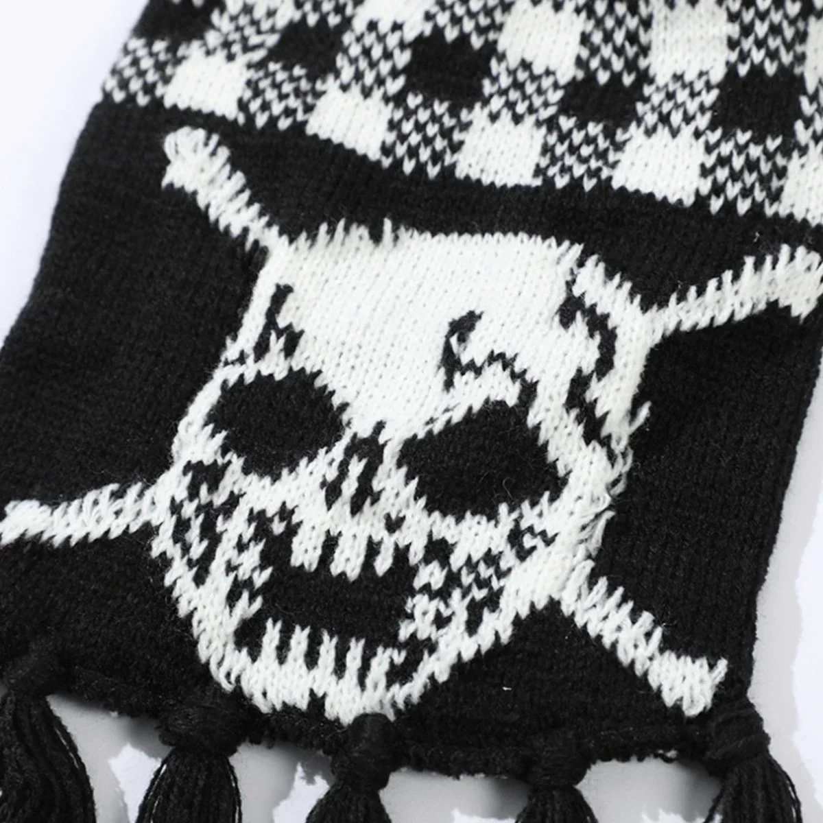 Halloween Skull Scarf Gothic Winter Knitted Black Dark Shawl Acrylic Tassels Harajuku Skeleton Wrap with