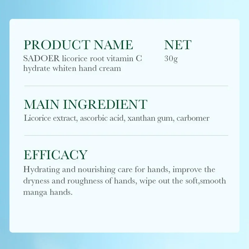 ●3. Our cream exfoliates and moisturizes dead skin cells and skin, softens and smoothes rough hand, it also helps repair dull skin and evens out skin tone