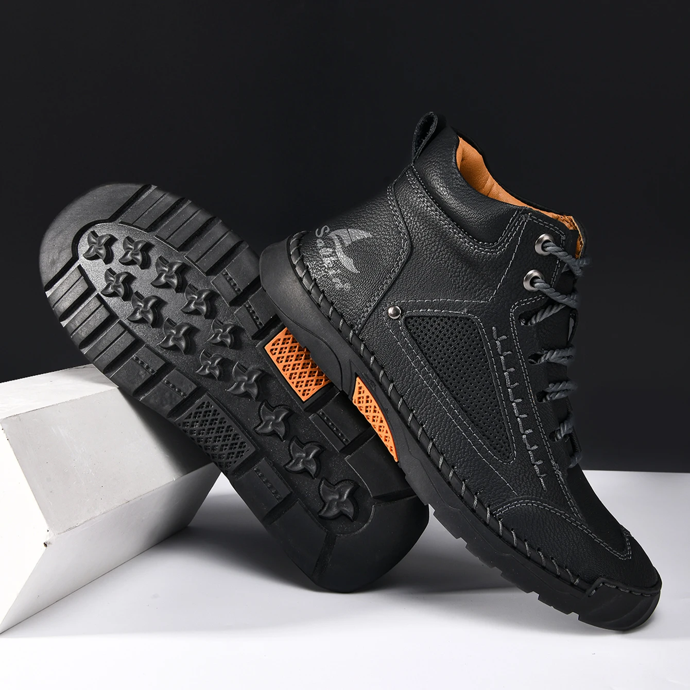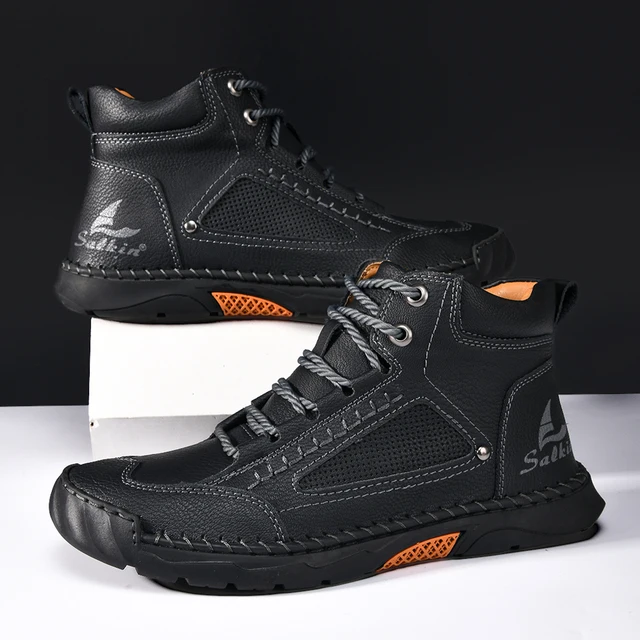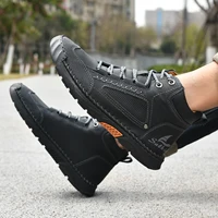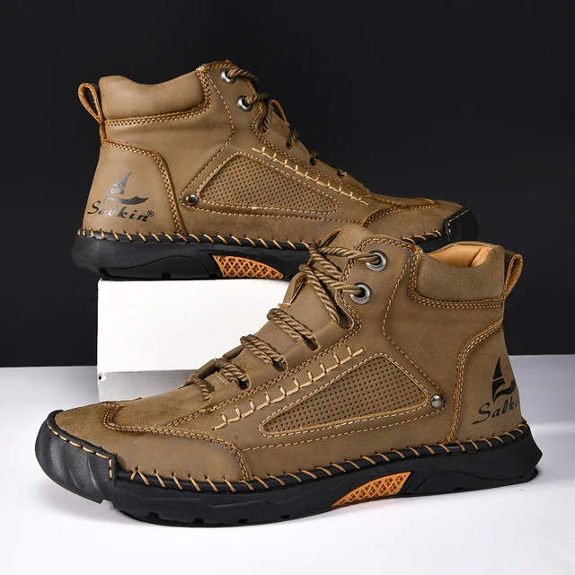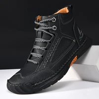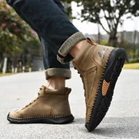 Hand-stitching Casual Leather Shoes Men Boots Outdoor Autumn Retro Breathable Casual Shoes Lace Up Khaki Ankle Boots Winter