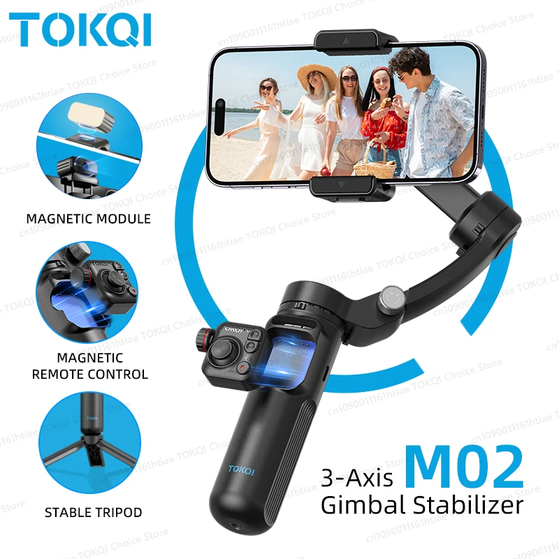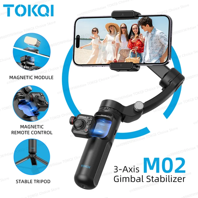 TOKQI M02 3-Axis Handheld Gimbal Stabilizer for iPhone and Android Cell Phones, Magnetic Detachable Remote Control, Selfie Tripod, Reduce Shaking When Recording Videos and Vlog