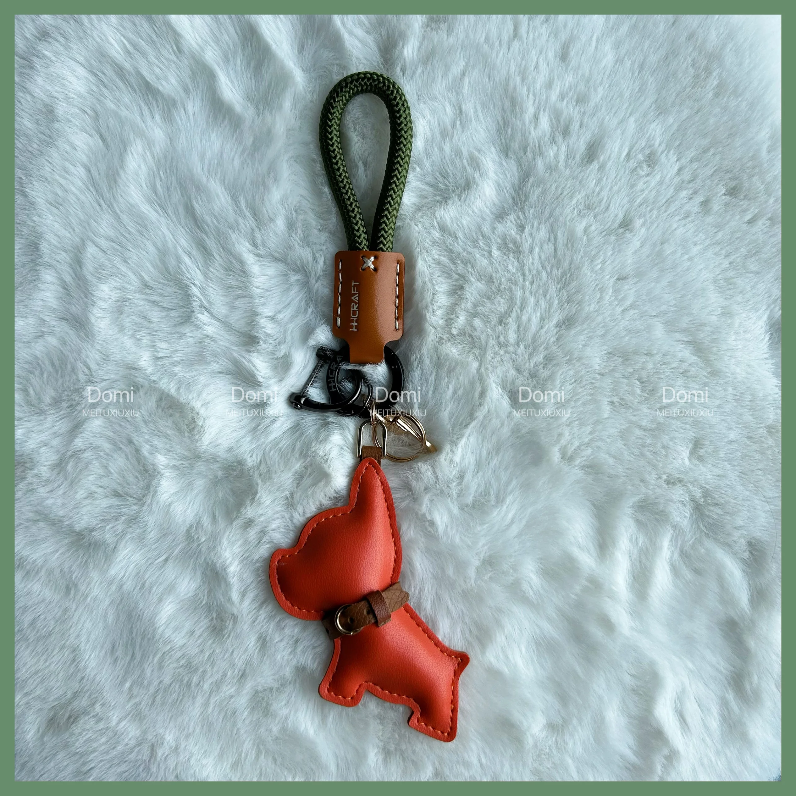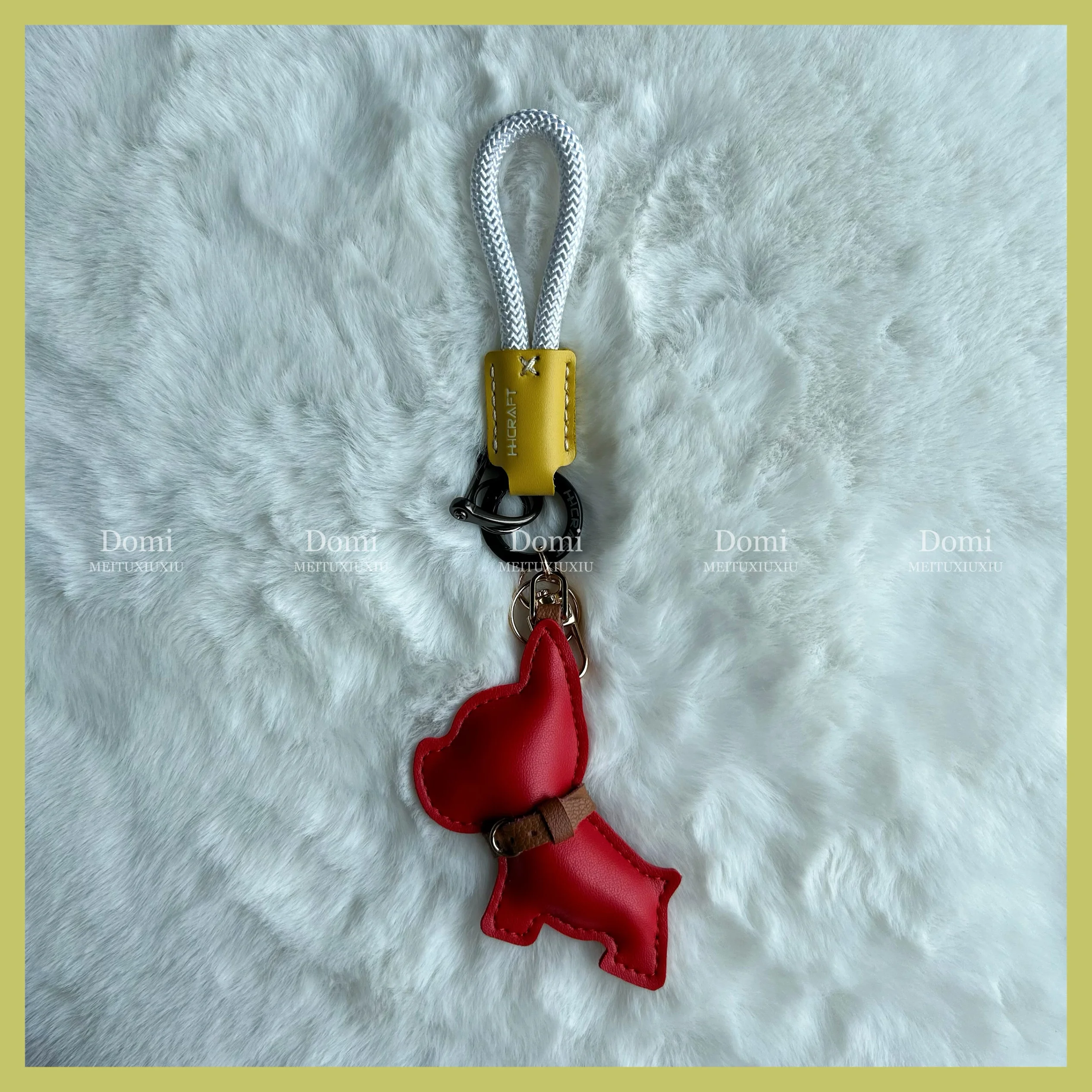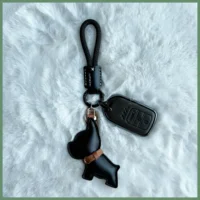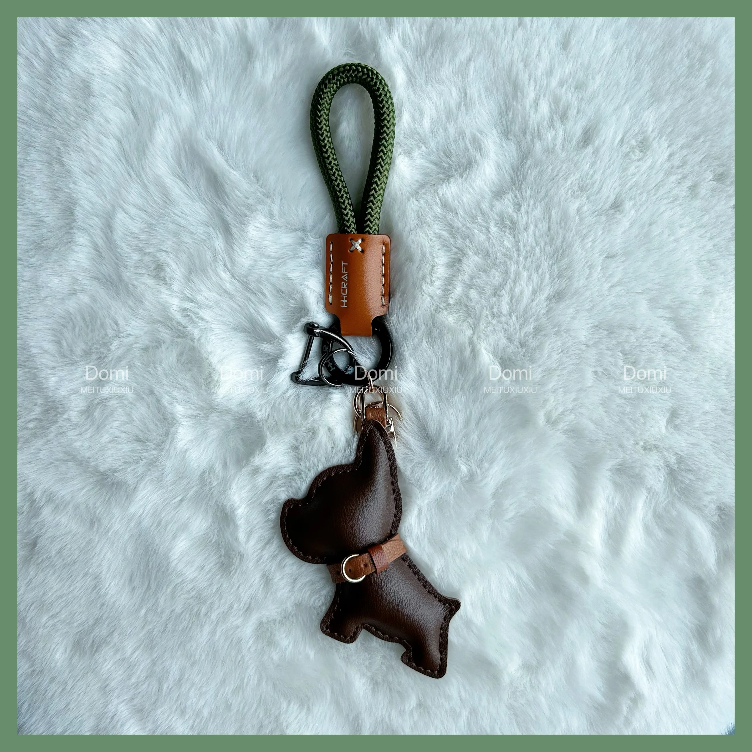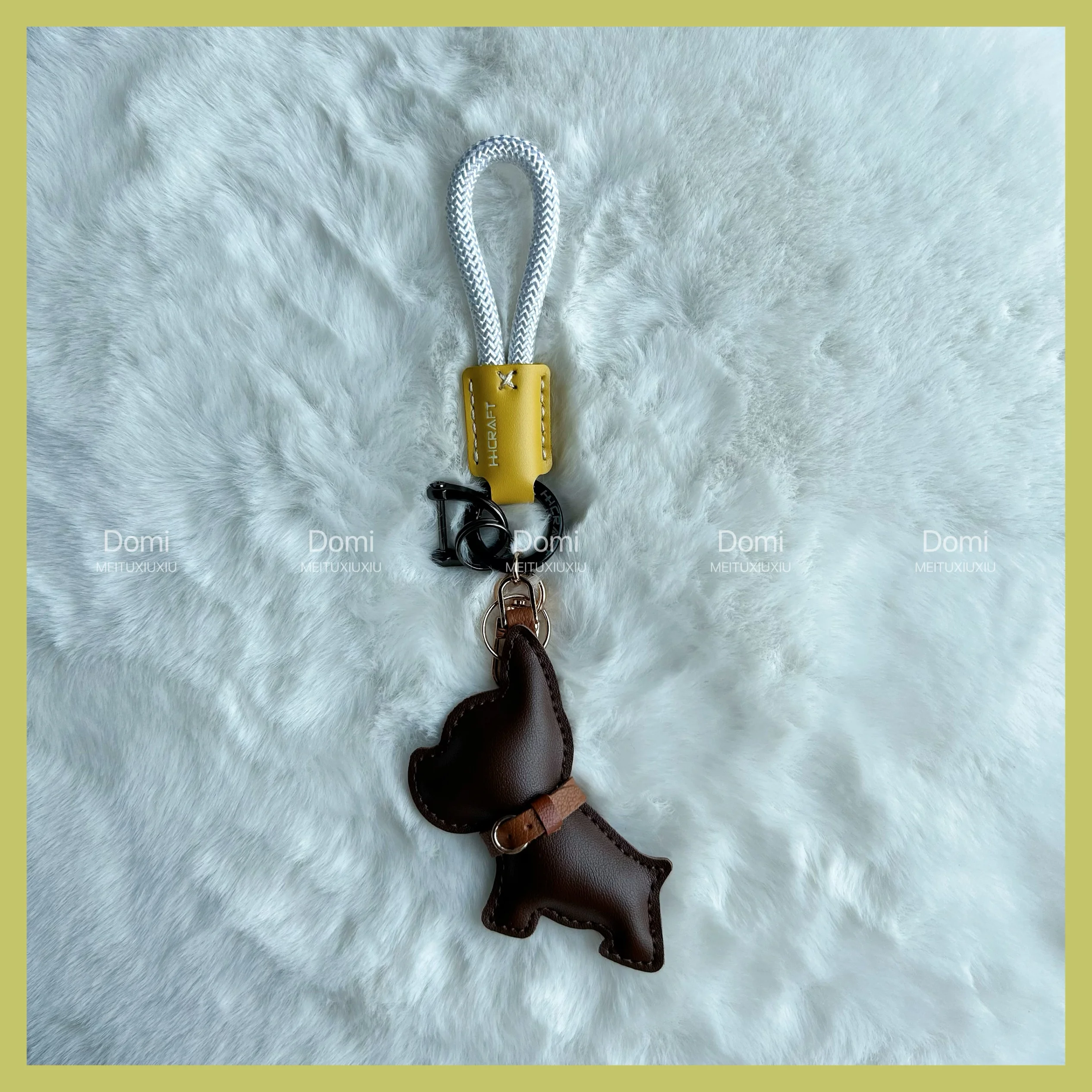 Handmade custom leather puppy car keychain pendant cute creative couple gift bag accessories premium