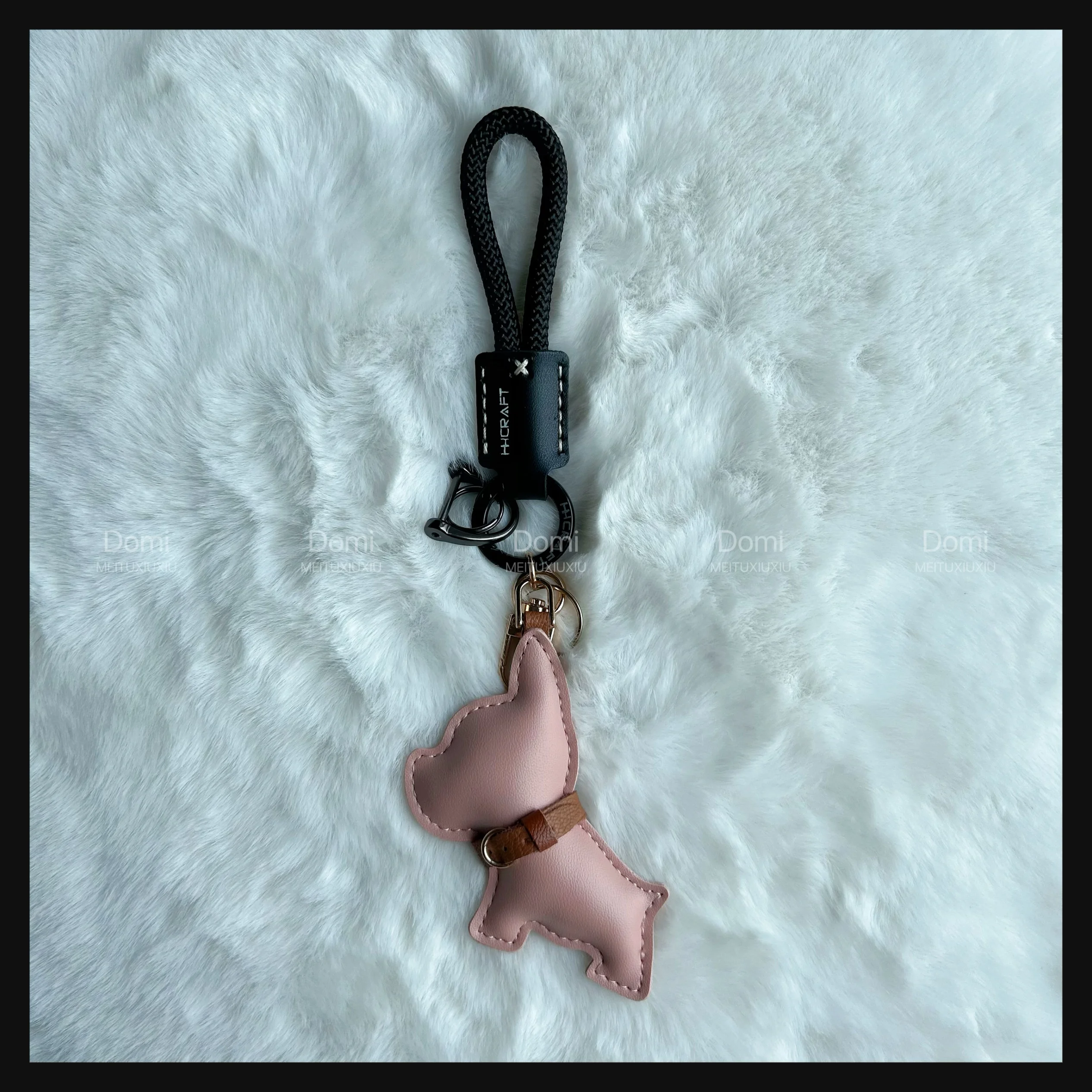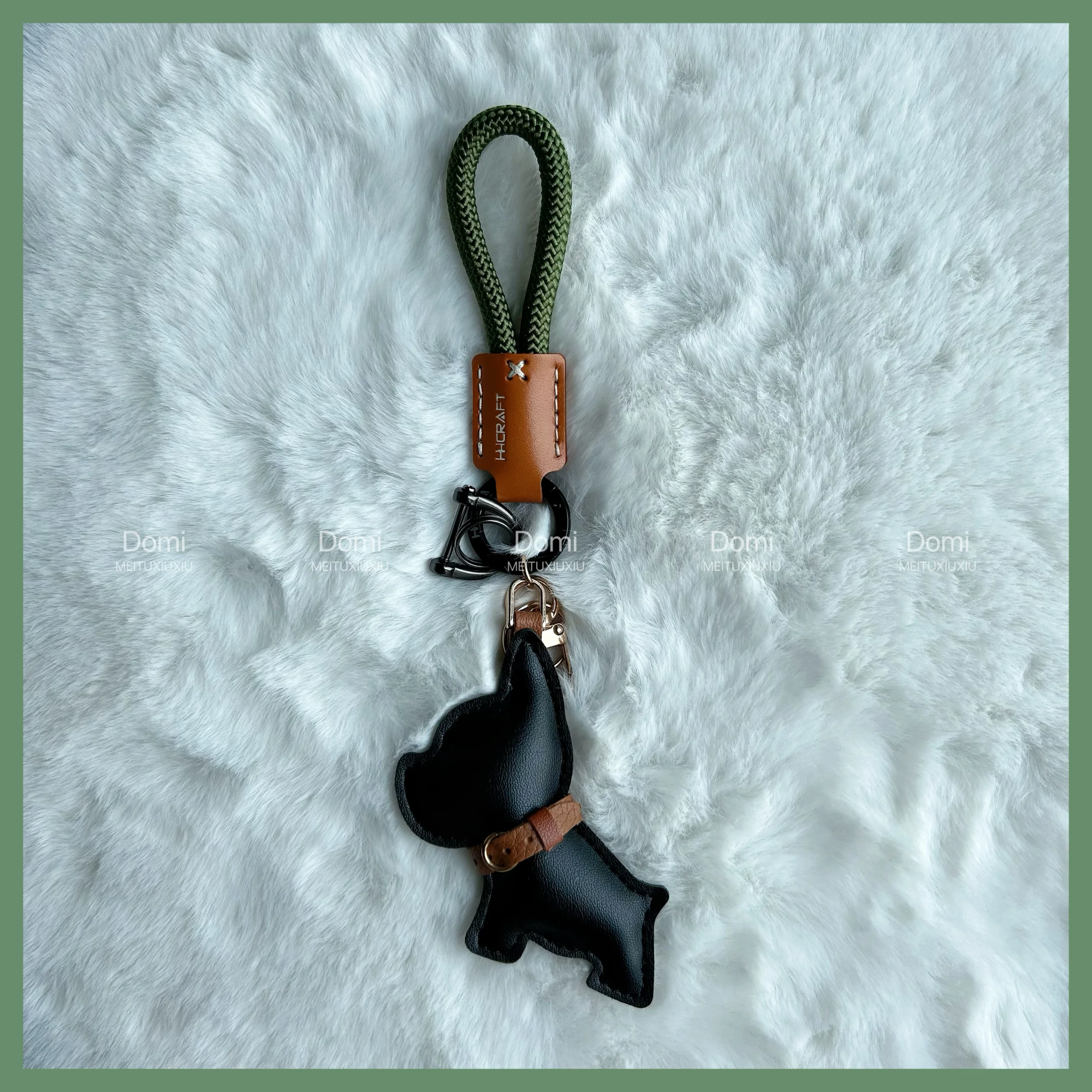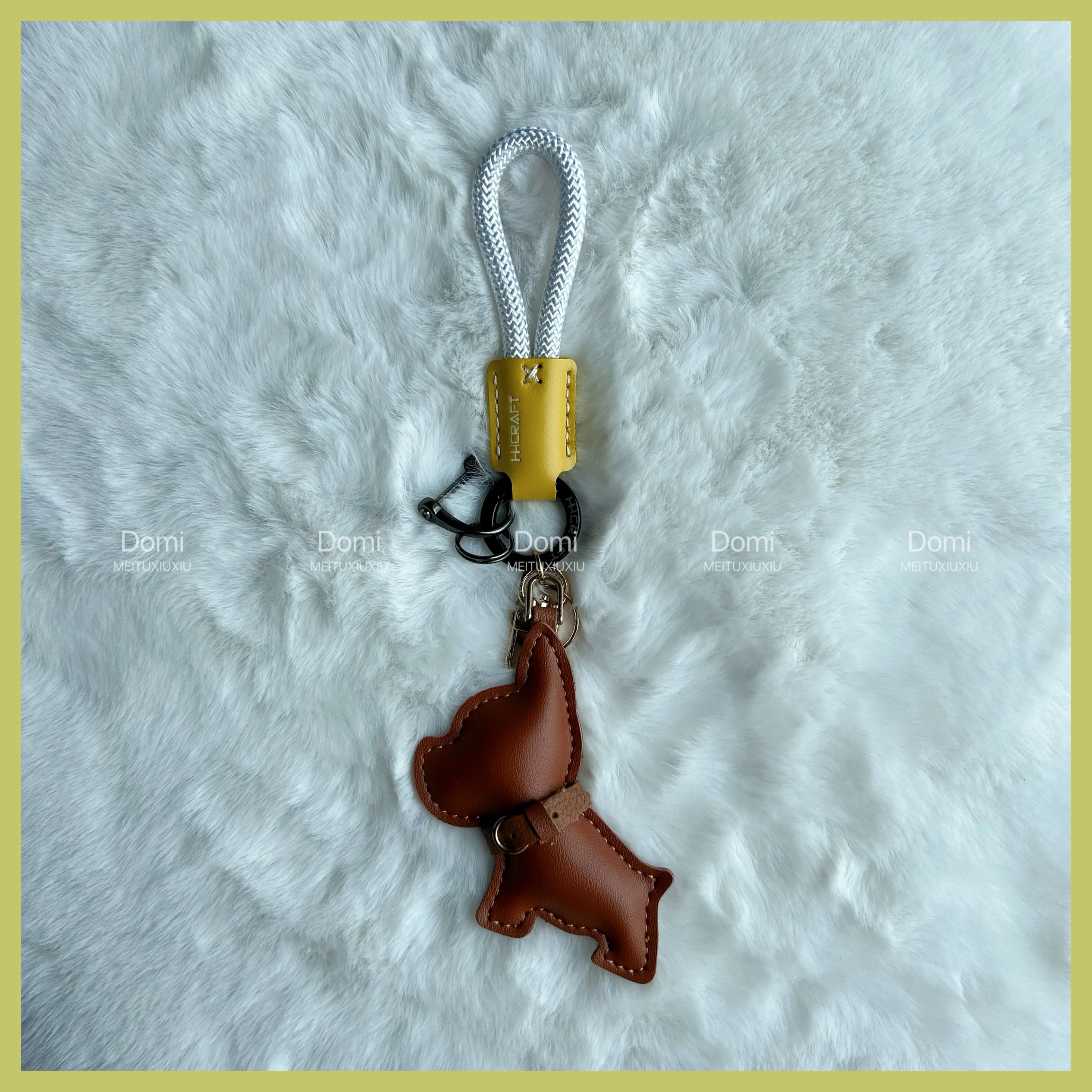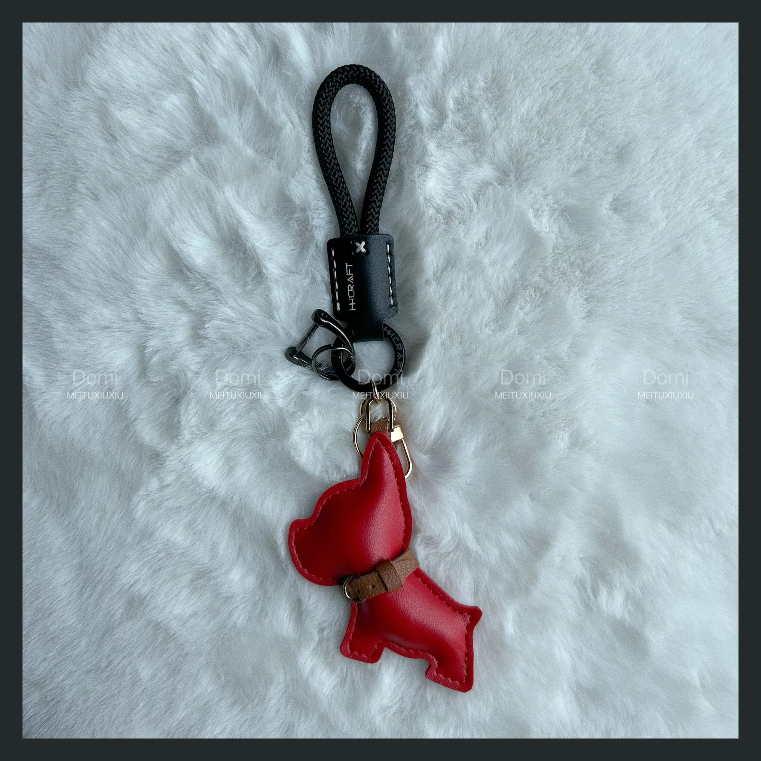 Handmade custom leather puppy car keychain pendant cute creative couple gift bag accessories premium