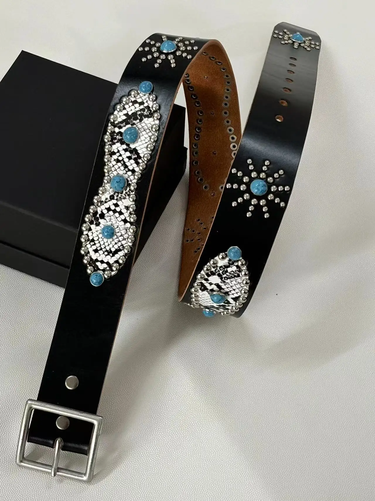 The belt features a handcrafted rivet design, adding a punk-inspired edge to your outfit.