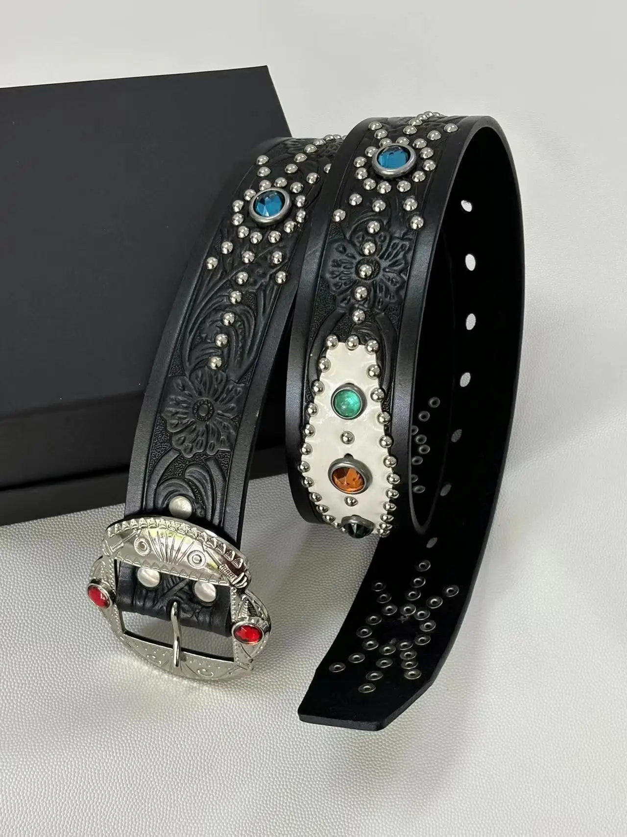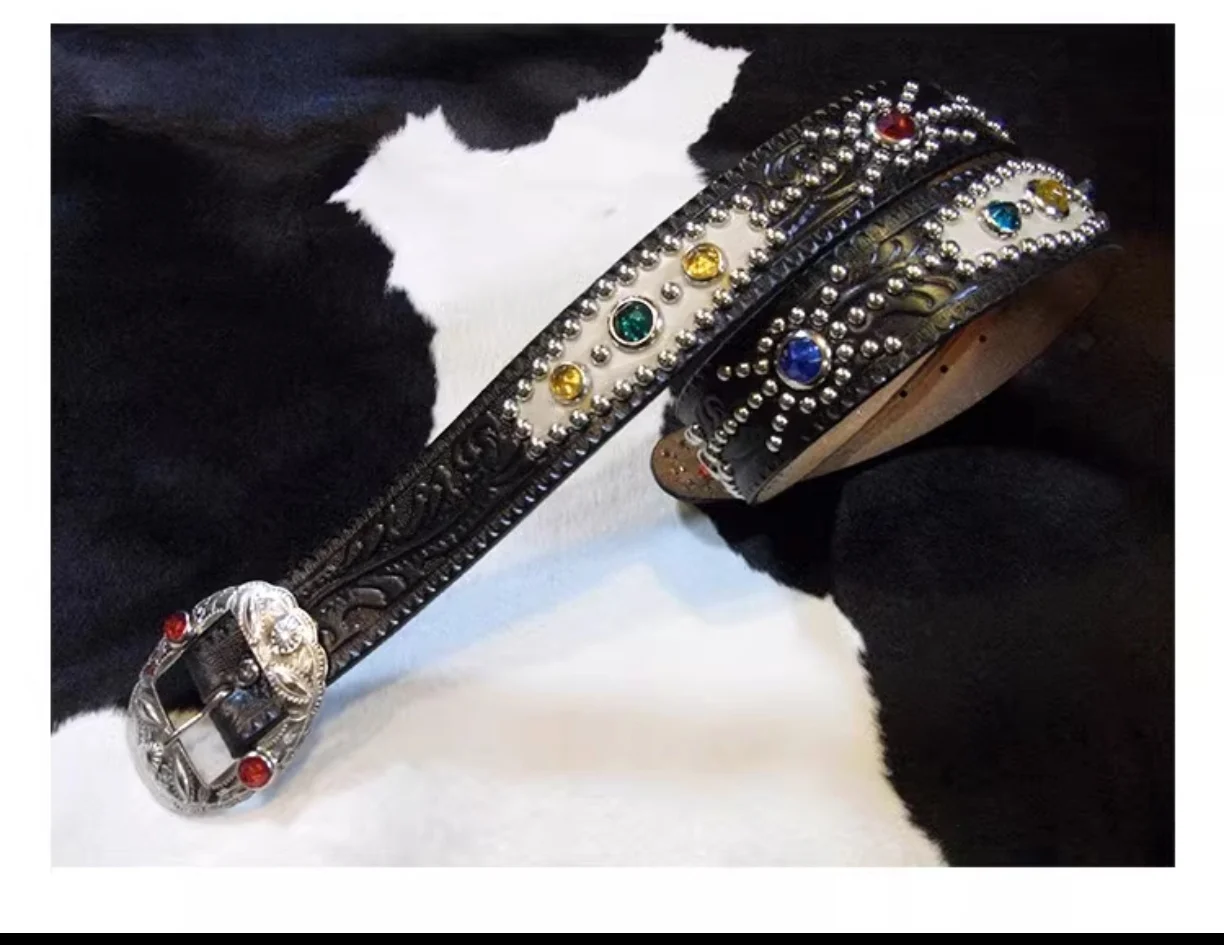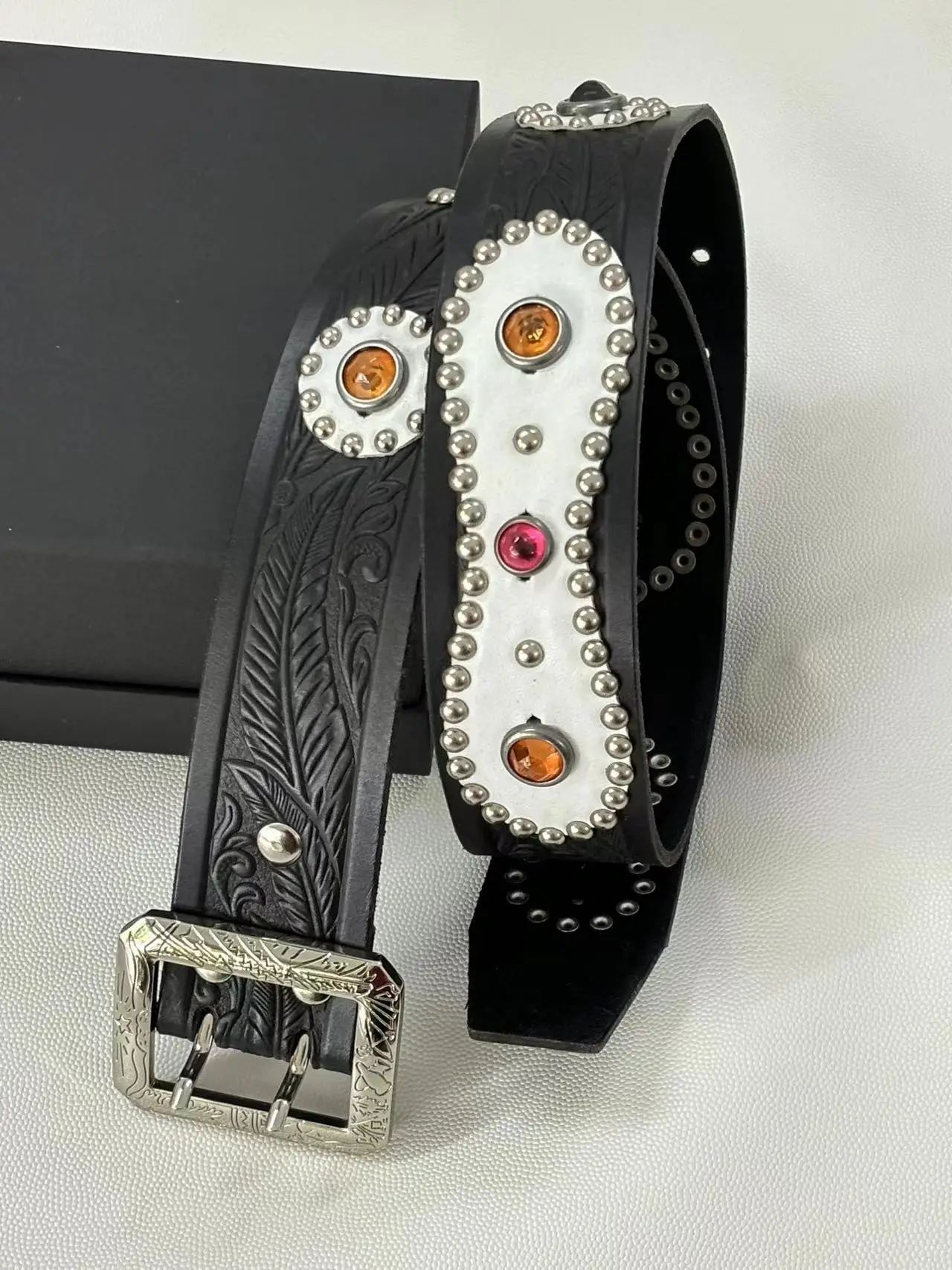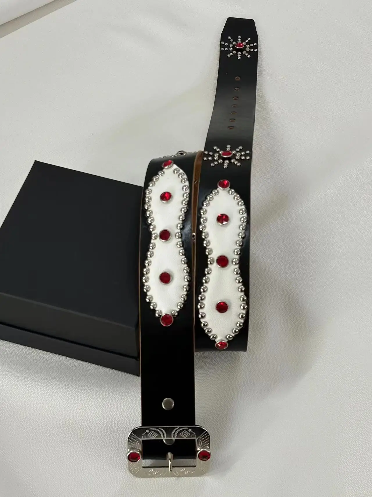 Diamond embellishments adorn the belt, enhancing its luxurious feel and unique style.