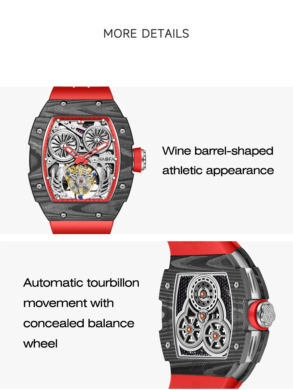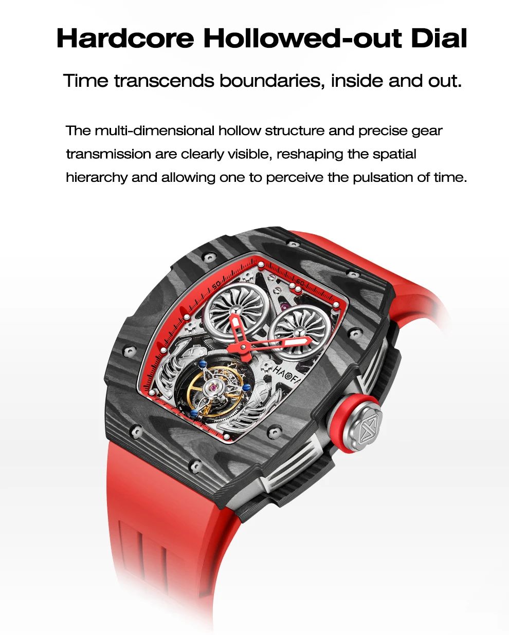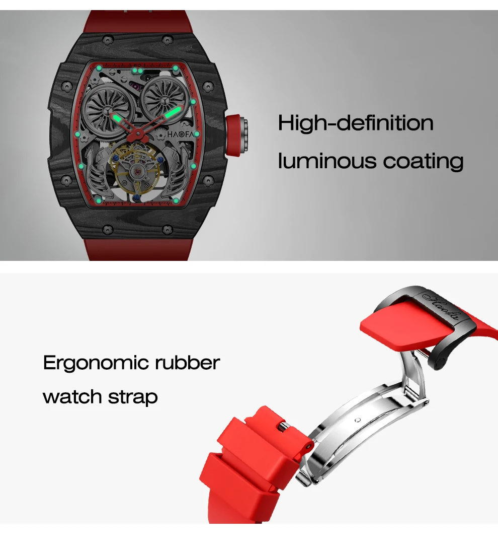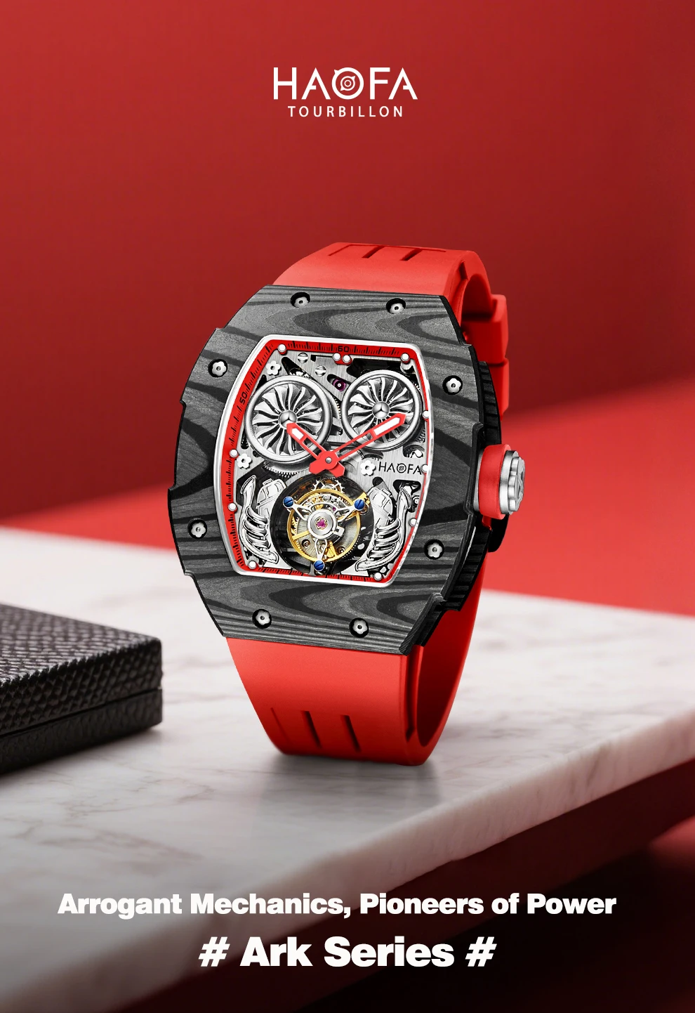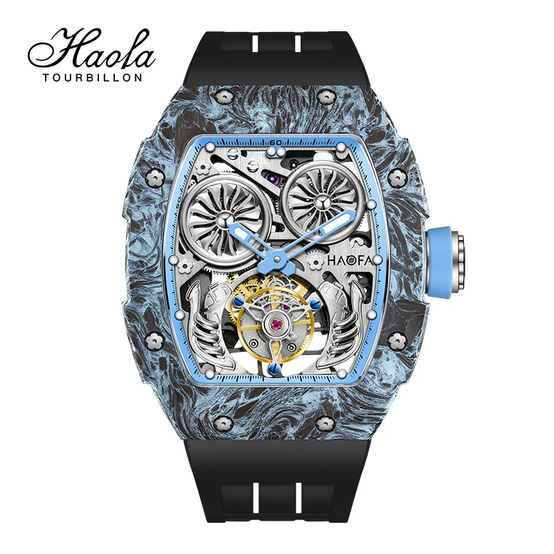 Haofa Tourbillon Watch Man Automatic Movement Mechanical Tourbillon Turbine Men’s Watch Double-Spring