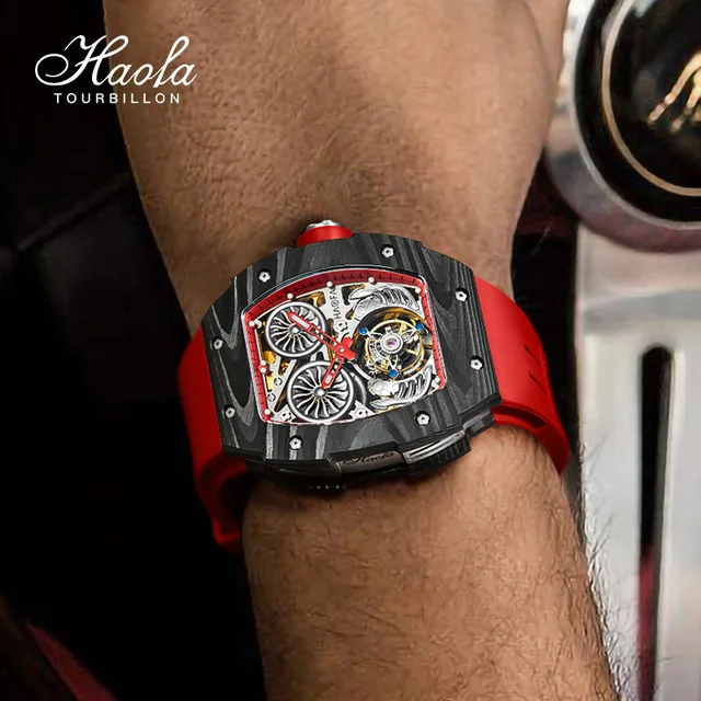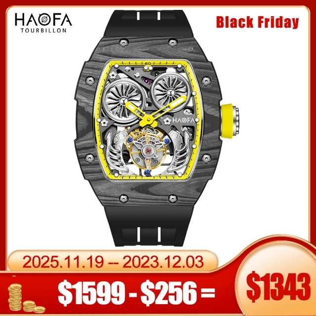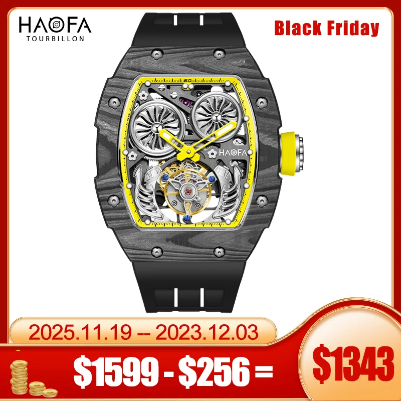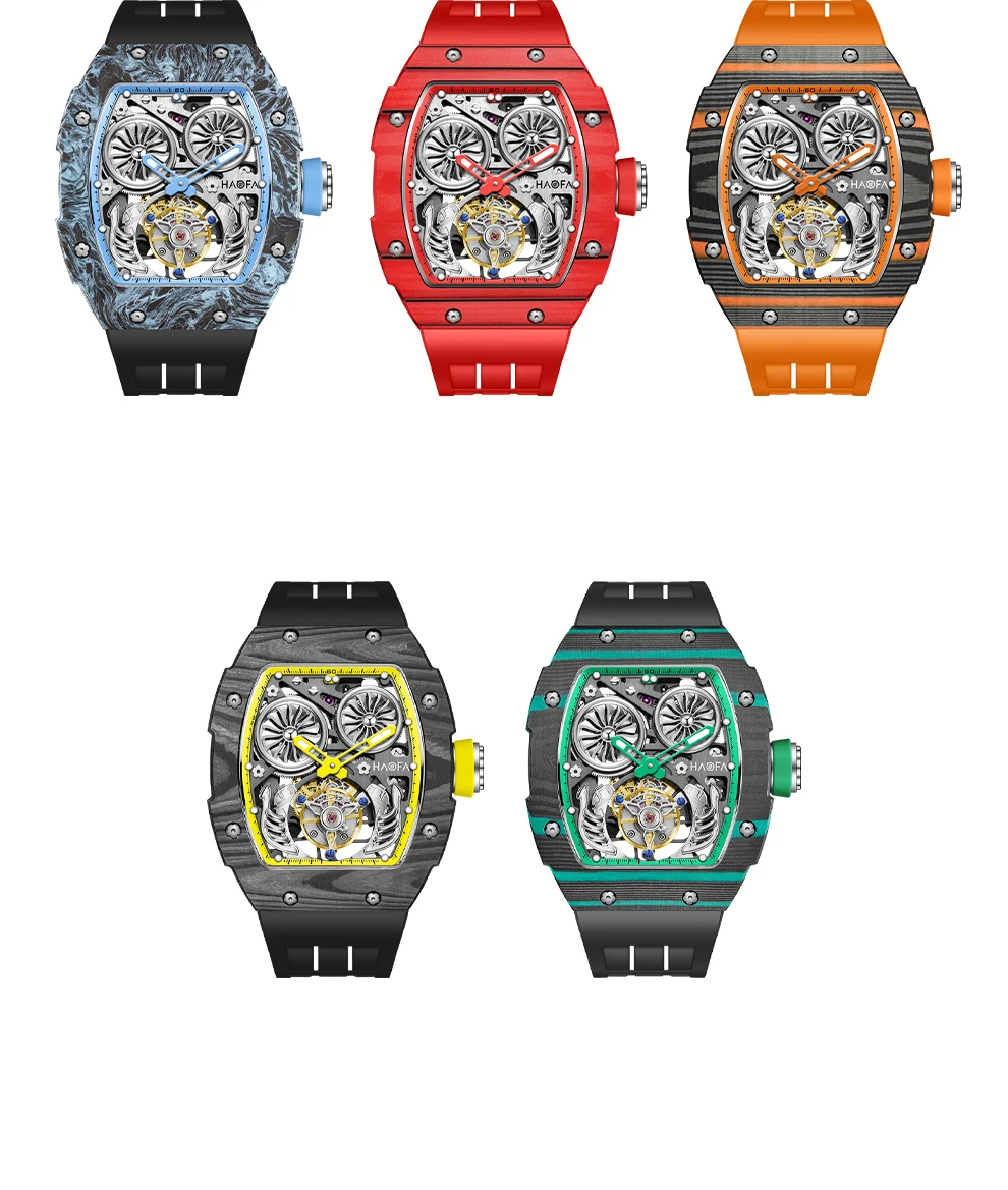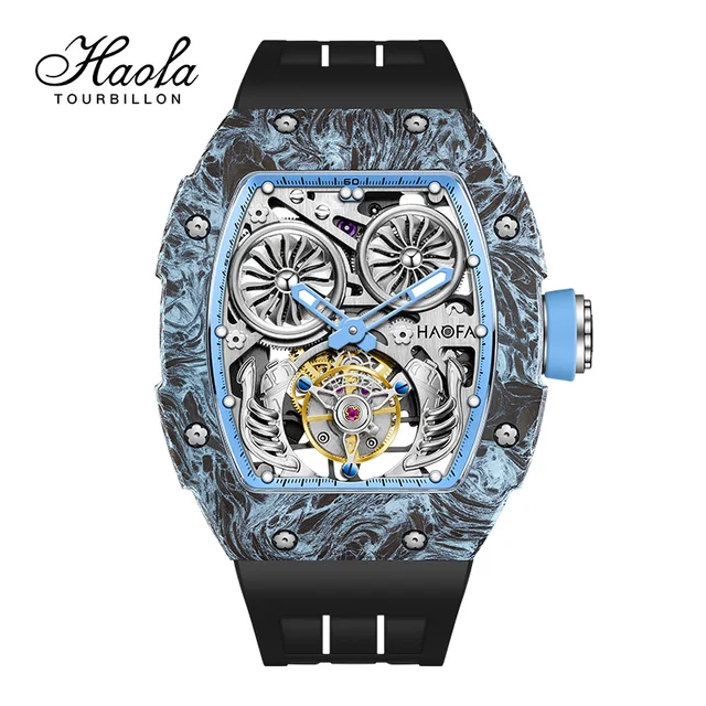Haofa Tourbillon Watch Man Automatic Movement Mechanical Tourbillon Turbine Men's Watch Double-Spring Drive Sport Skeleton 1922