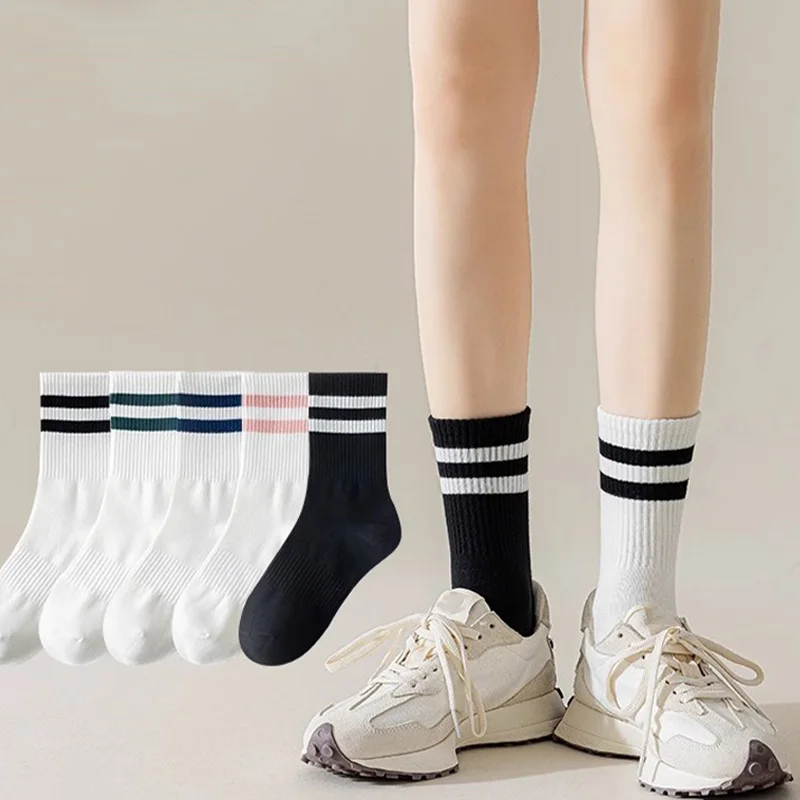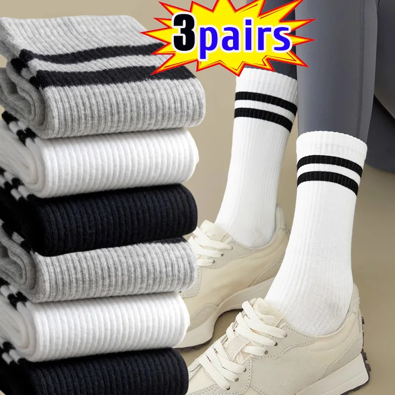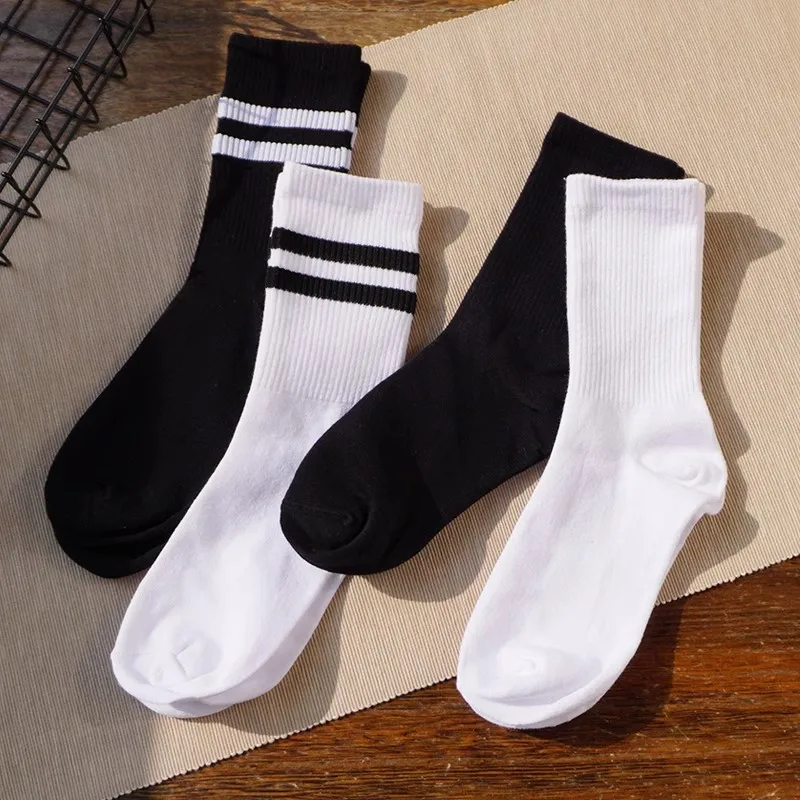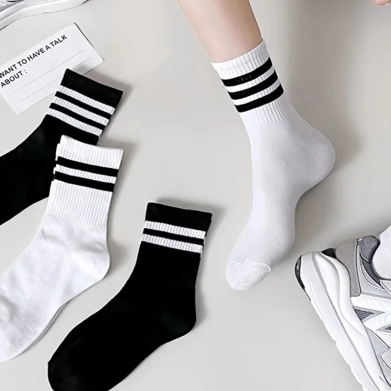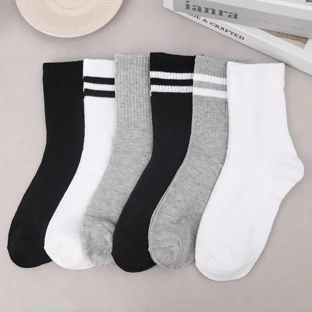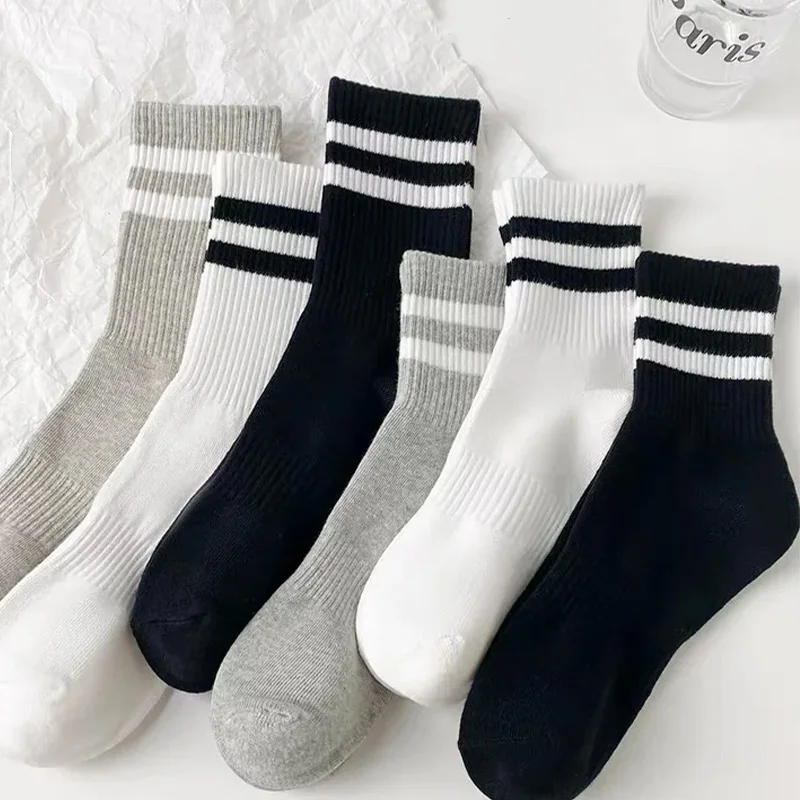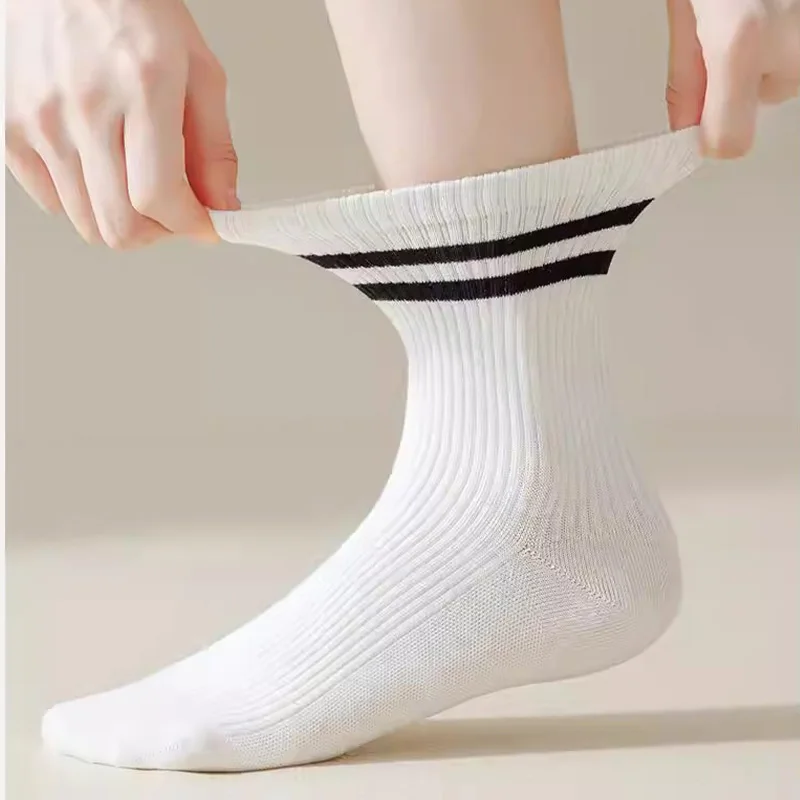 1/3 pairs men's spring autumn simple striped breathable sports socks men's leisure comfortable running socks mid length socks
