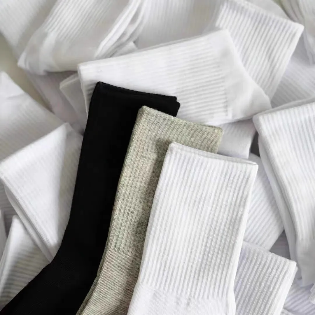 Harajuku Men Sock Autumn Winter Simple Casual Round Neck Socks Black White Grey Solid Color Socks High-quality