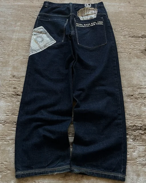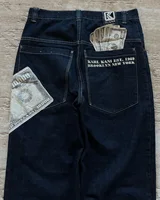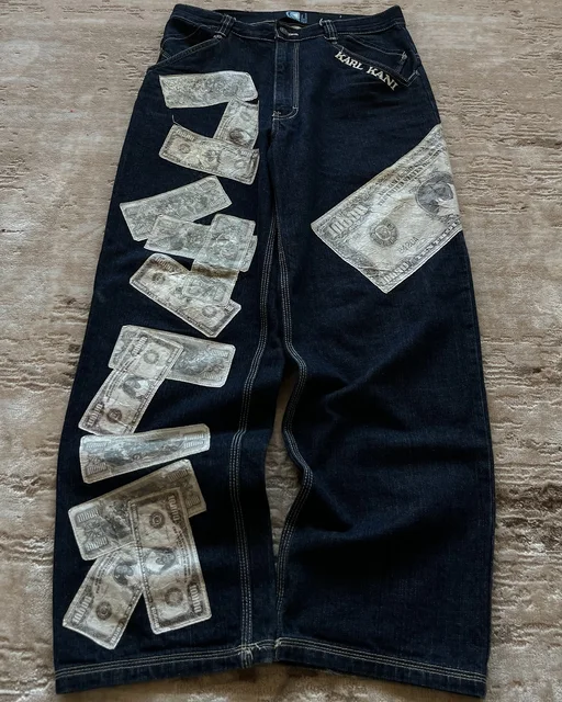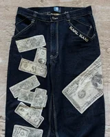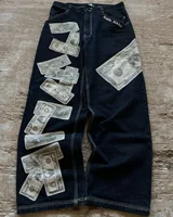 Harajuku Money Print Streetwear Jeans High Waist Wide Trouser Black Pants Streetwear Men Hip Hop Women Embroider Y2k Baggy Jeans