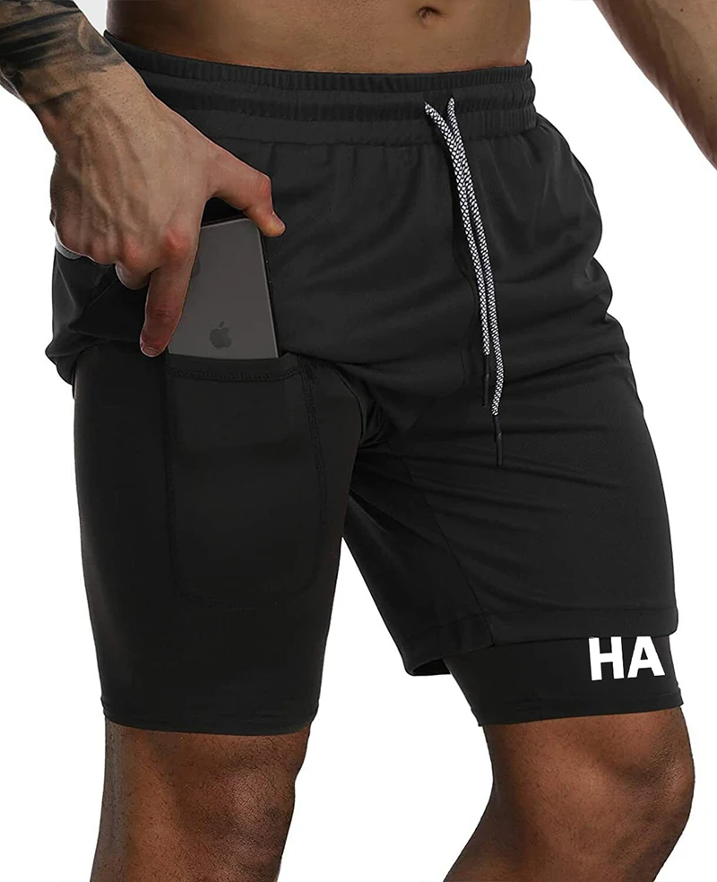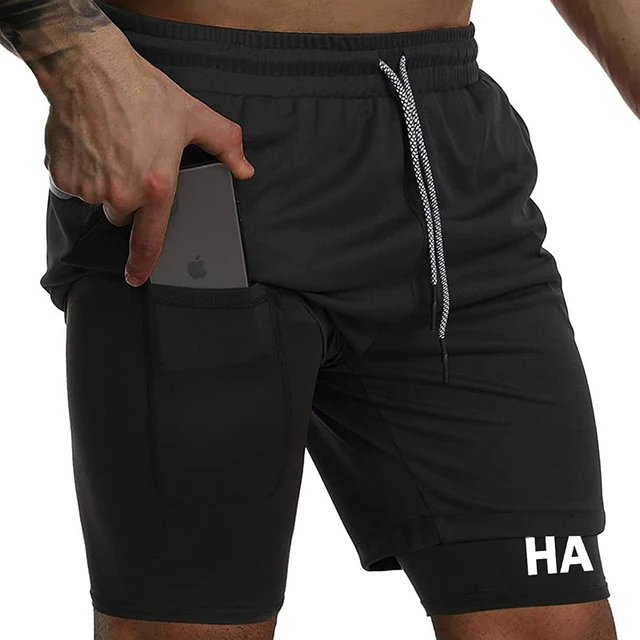 Hat Graphic Print 2 in 1 Shorts for Men Summer Sporty Quick Dry Shorts Gym Workout Running Shorts with Phone Pocket Activewear