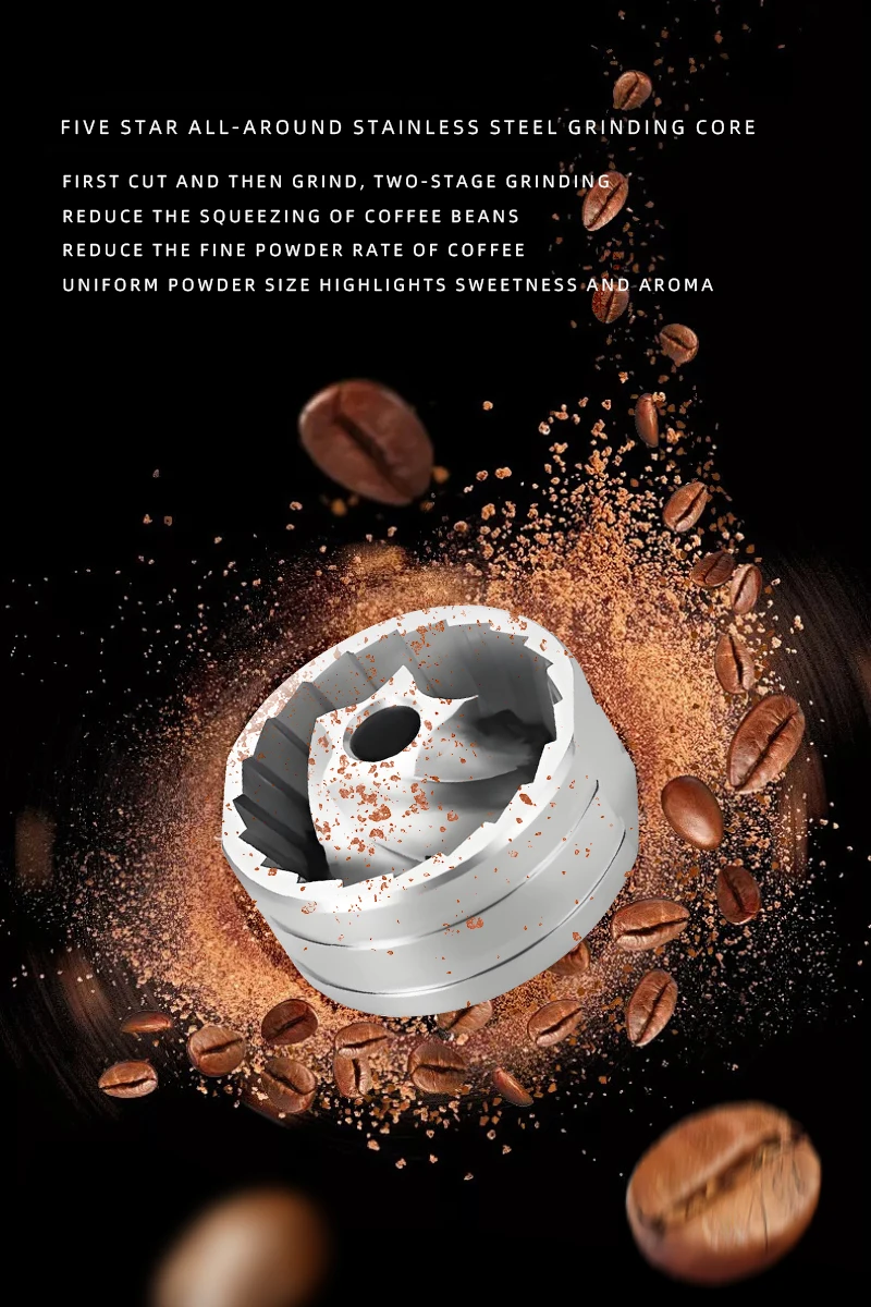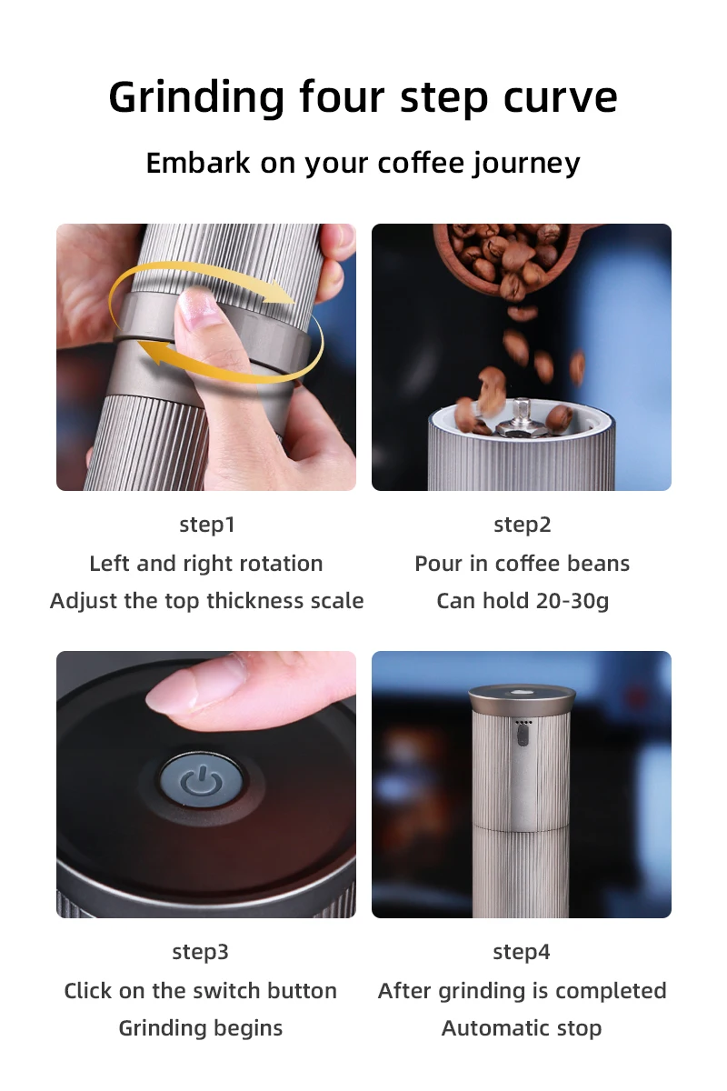 Large capacity battery: Under normal use, 7.4V/1000mAh can grind about 30 times (15g coffee beans each time) on a full charge