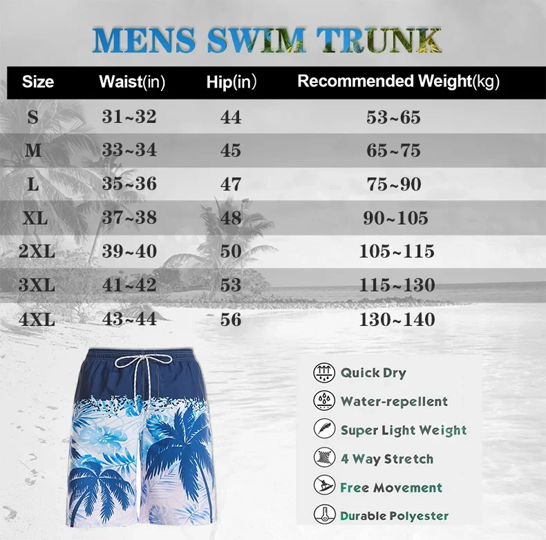 • 3D Digital Printing Design : Featuring a unique 3D digital printing pattern, these shorts add a stylish touch to your beachwear.