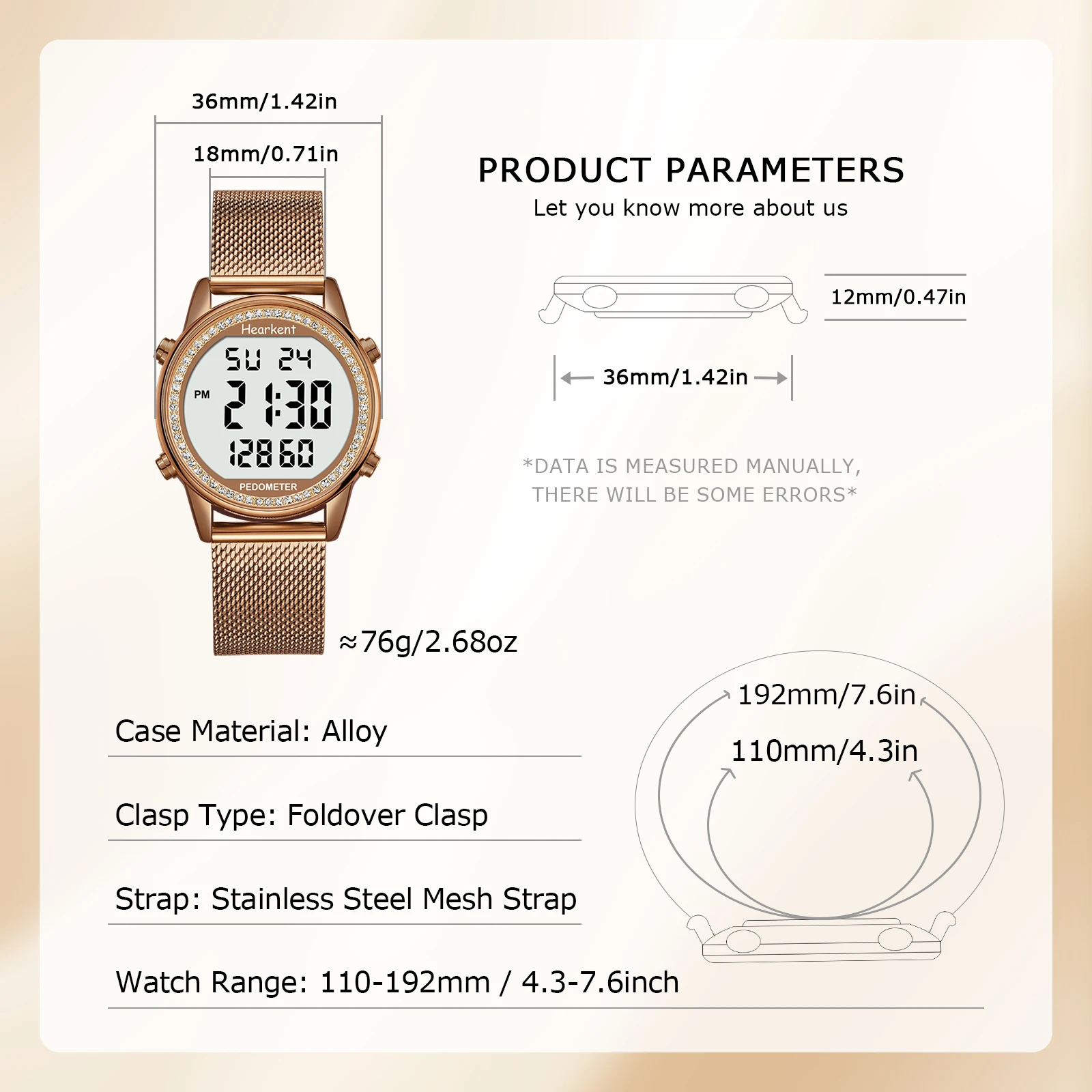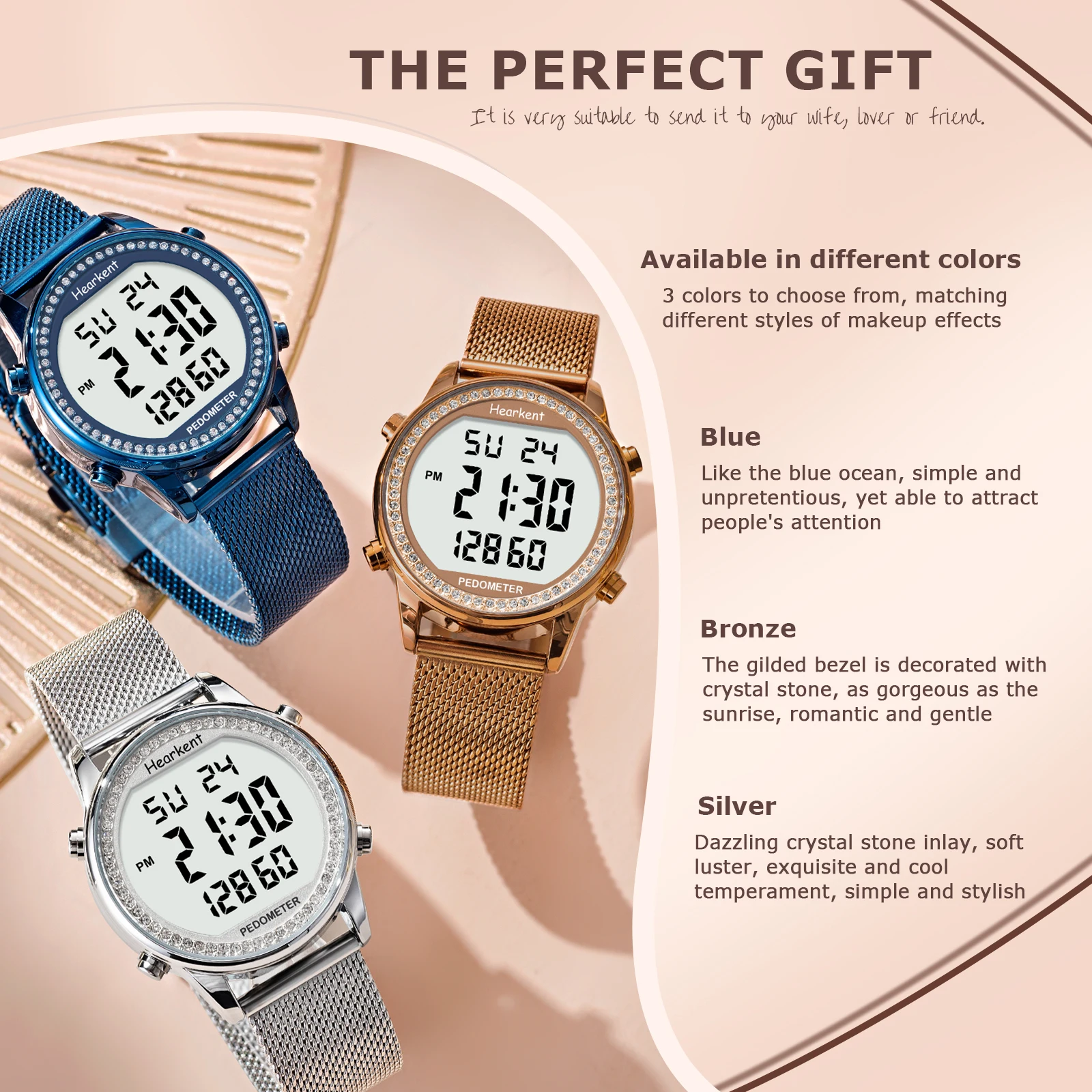 Hearkent Outdoor Women Watches Sports Pedometer Calories Waterproof Digital Step Counter Wrist Watch for Walking Tracker