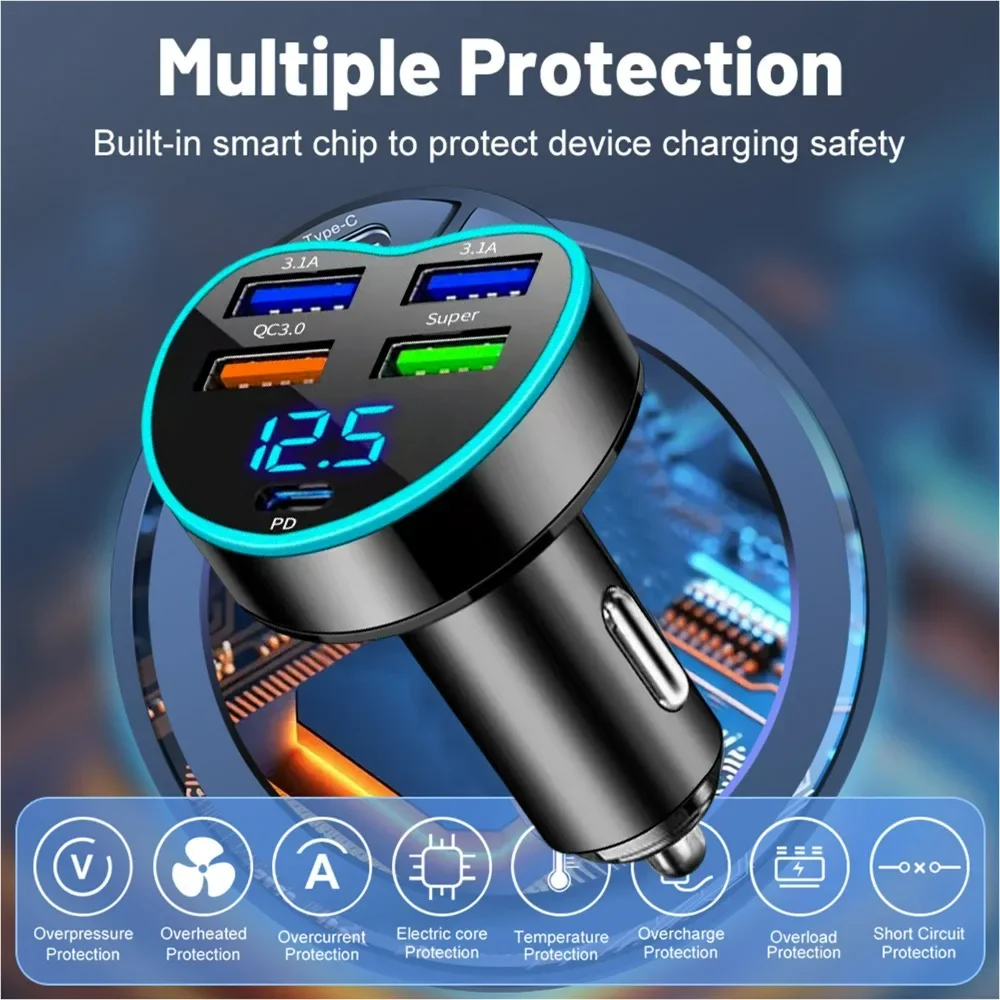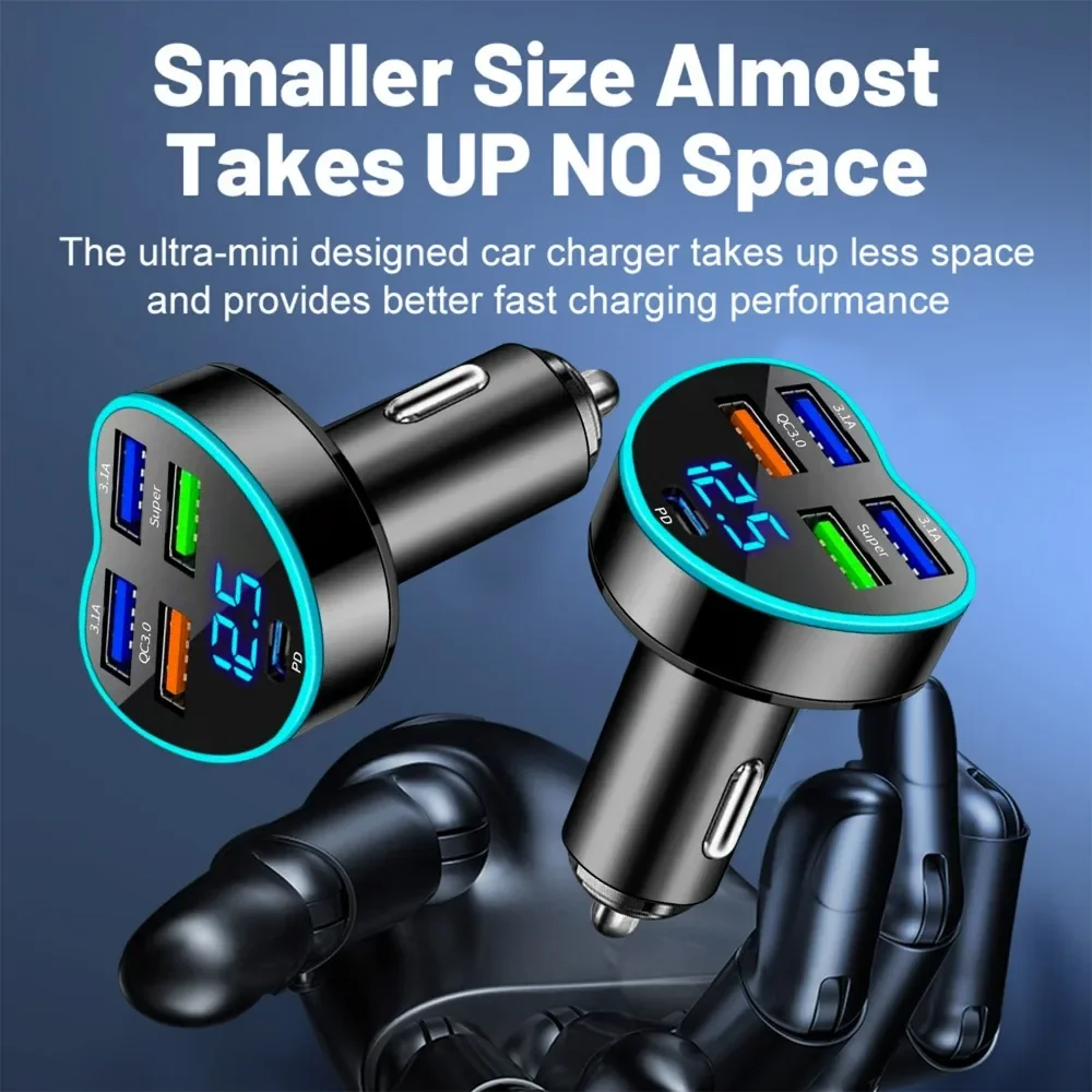 - 【Unique romantic design】: This heart-shaped PD+4USB digital display car fast charging charger adopts a heart-shaped appearance design, adding a touch of romance and warmth to your car. The ambient light configured on the edge not only creates a soft light and shadow effect in the car at night, but also enhances the driving comfort and sense of technology.