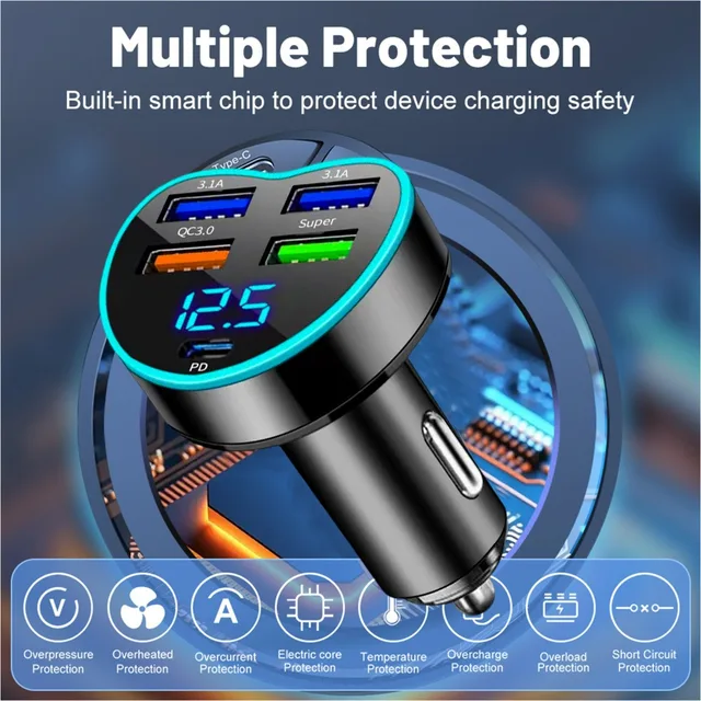- 【Smart digital display function】: The built-in digital display screen can display the current charging information in real time, allowing you to clearly understand the charging status and charge more safely. At the same time, the smart chip can automatically identify the device, match the best charging current, and protect the device battery.