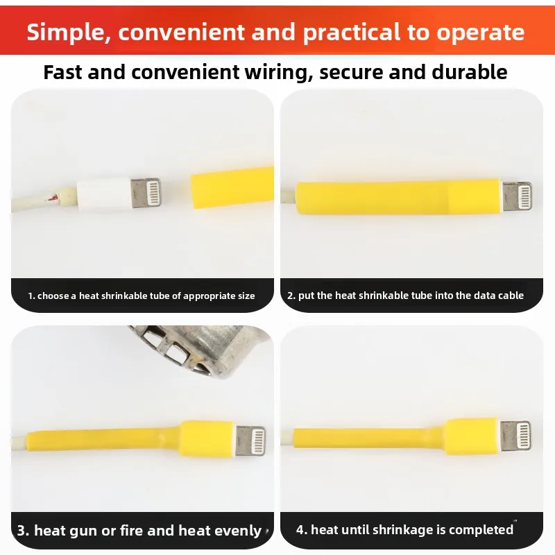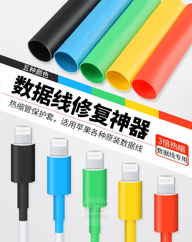 Heat Shrink Tube Insulating Sleeve (3x) for Mobile Phone Data Cables, Designed for Charging Cable Protection