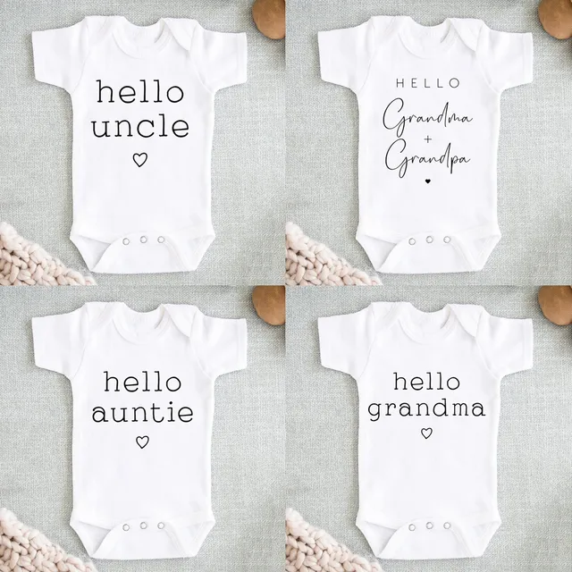 Hello Uncle/auntie Baby Pregnancy Anouncement Bodysuit Summer Short Sleeve Jumpsuits Baby Boys Girls Romper Clothes
