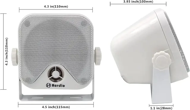 Herdio 4” 100W Heavy Duty Waterproof Boat Marine Bluetooth Speakers Surface Mounted For Camper