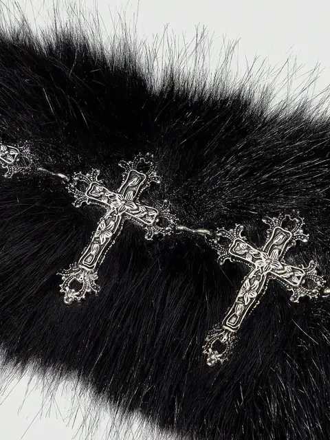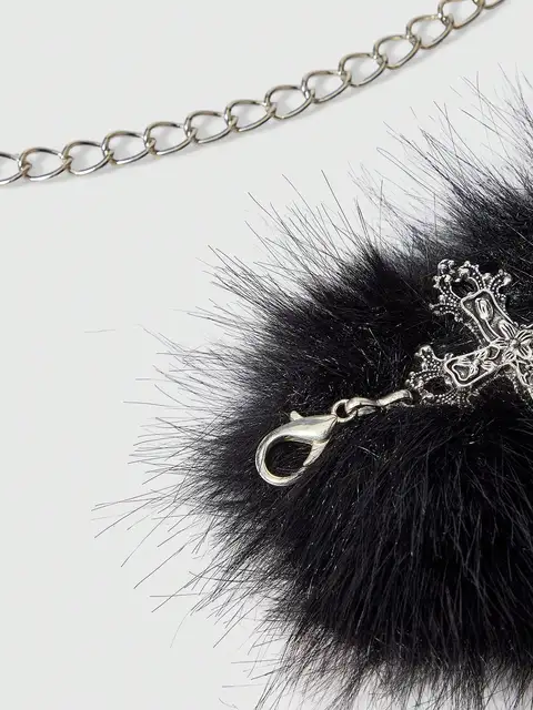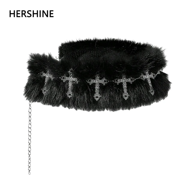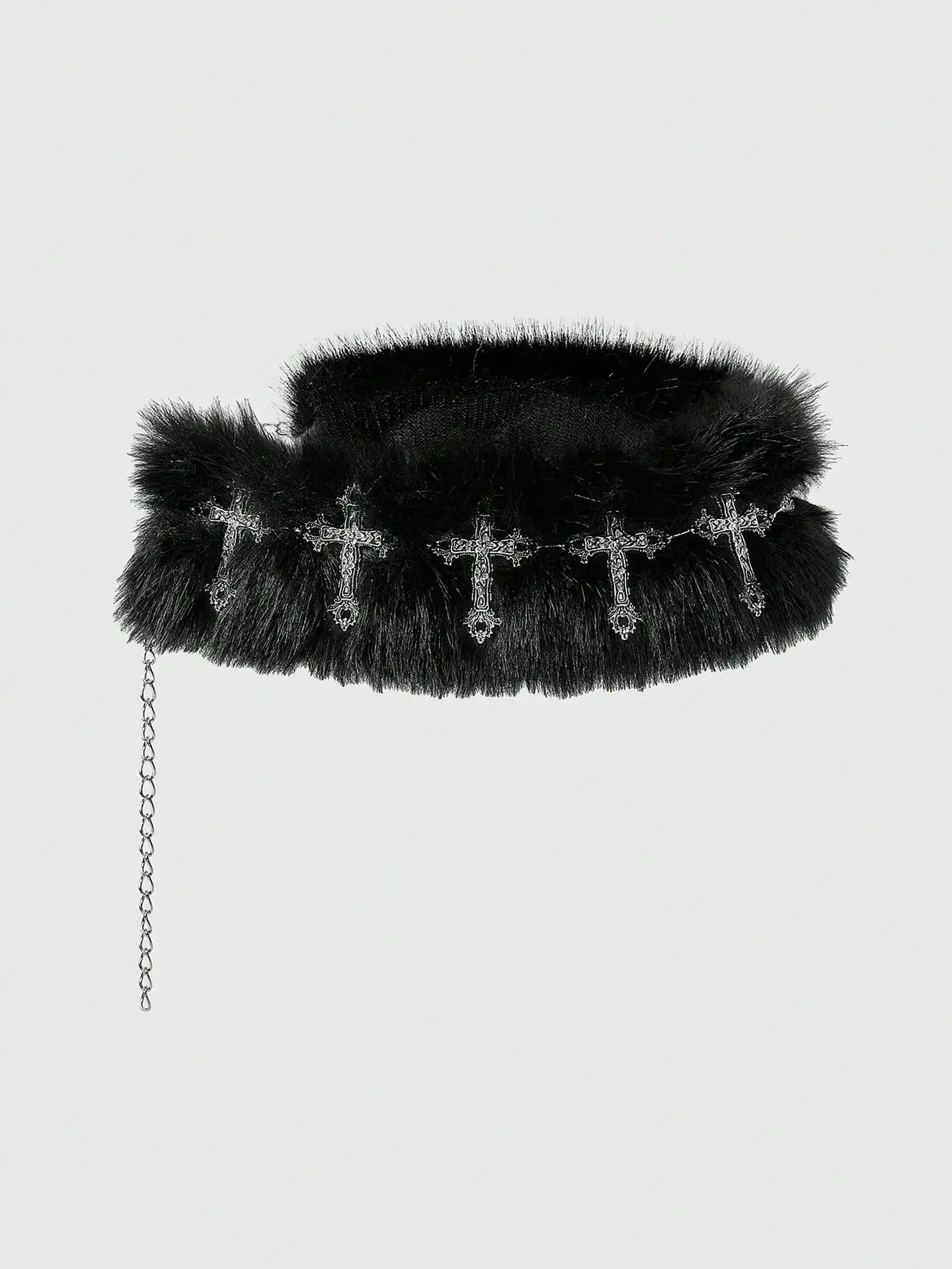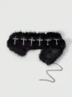 HERSHINE Women’s Fashion Black Plush Cross Metal Waist Chain, Y2K Gothic Punk Street Rock Hip Hop