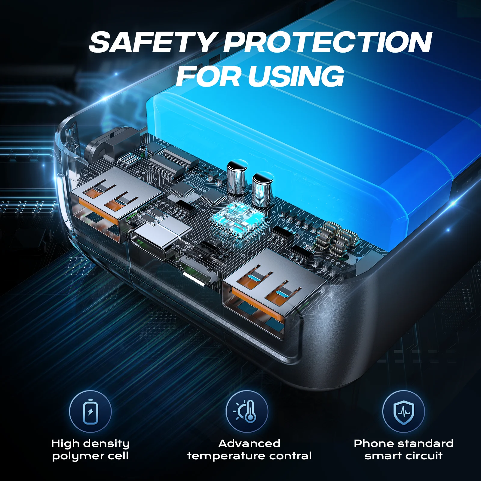 Features 22.5W Power Delivery fast charging via the USB-C port, capable of charging most phones from 0% to 50% in just about 30 minutes for a quick power boost.