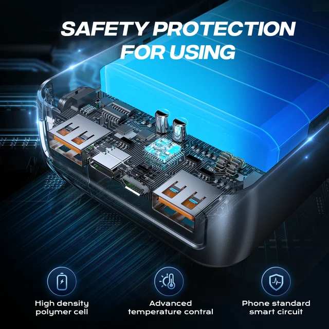 Equipped with 3 output ports (2× USB-A + 1× USB-C), allowing you to charge up to three devices at once—perfect for you and your friends.