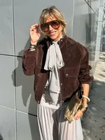 HH Women Long Sleeves Stand Collar Pockets Single-Breasted Jacket Autumn Winter Coat Female Fashion Casual Loose Reversible Coat