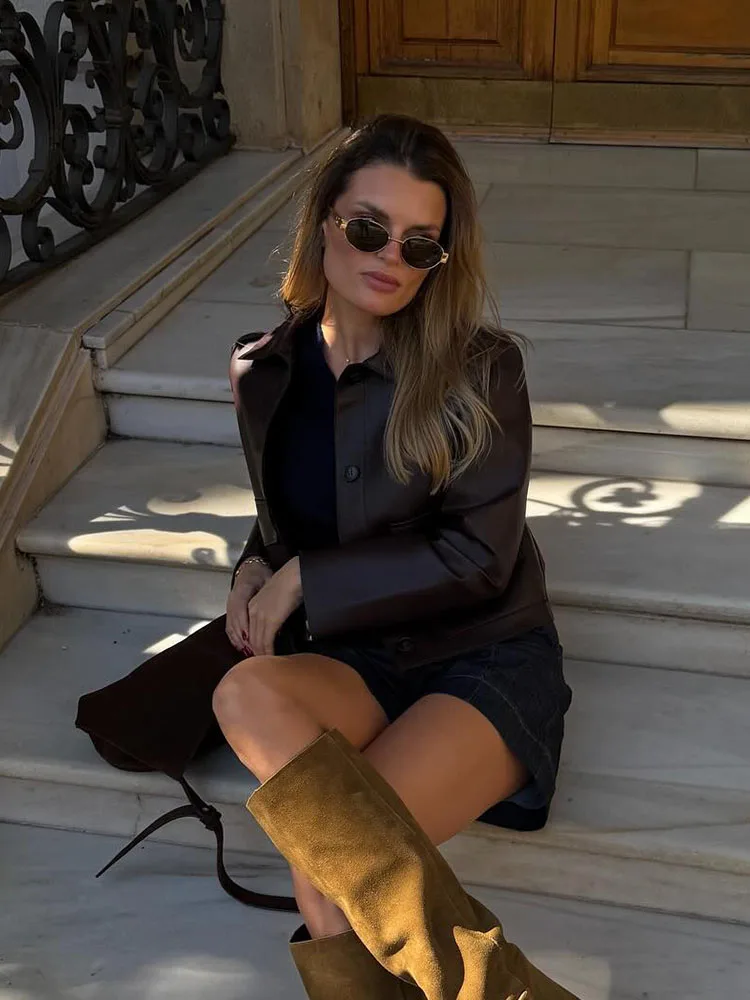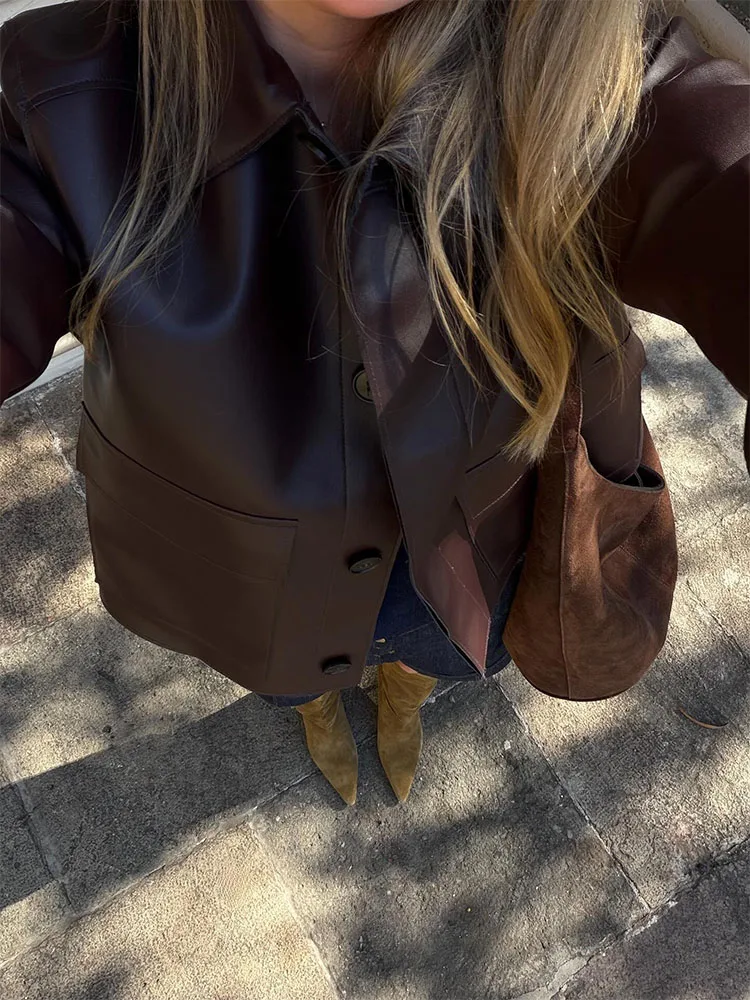 HH Woman Fashion Solid Long Sleeves Loose Jacket High Street Coat Women Zipper Pocket Button Decoration Casual Short Coat