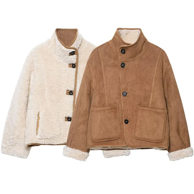 HH Woman Fashion Solid Long Sleeves Loose Jacket High Street Coat Women Zipper Pocket Button Decoration Casual Short Coat