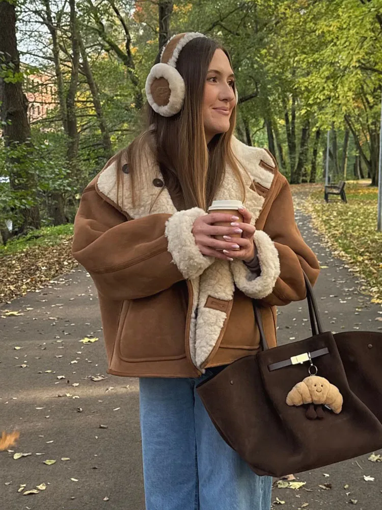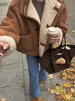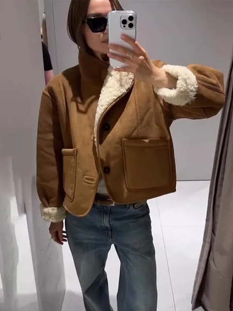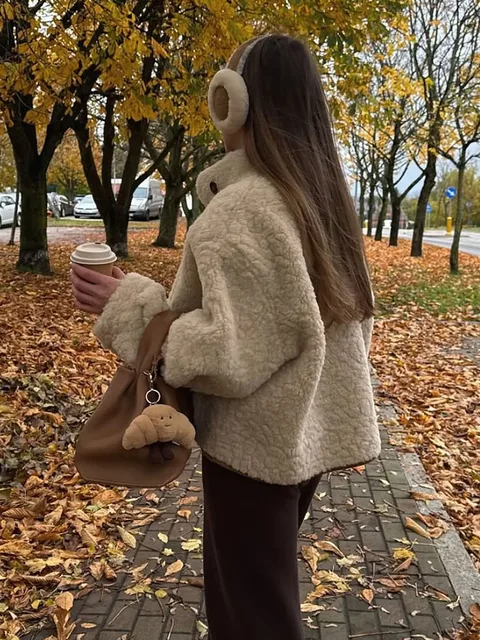 HH Woman Fashion Solid Long Sleeves Loose Jacket High Street Coat Women Zipper Pocket Button Decoration Casual Short Coat