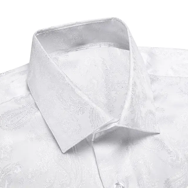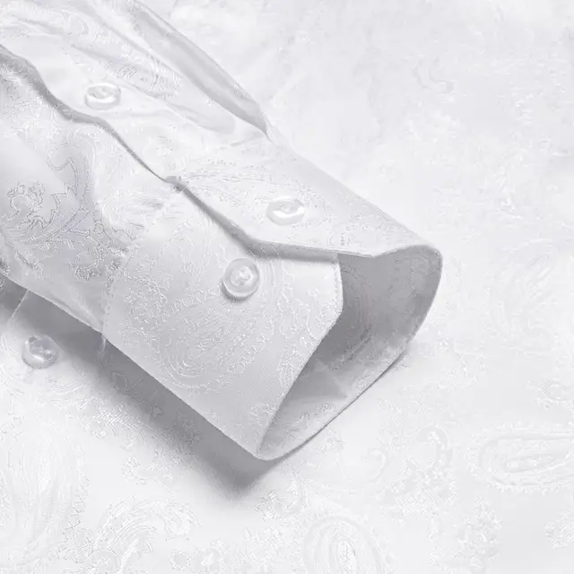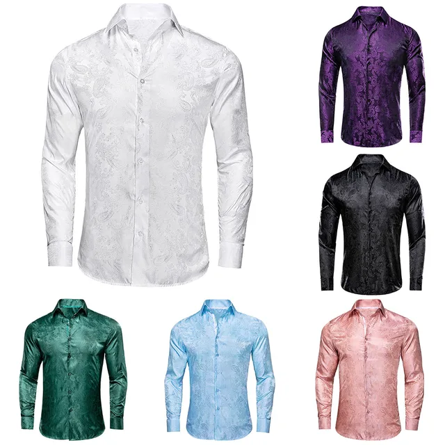 Hi-Tie Black Gold Mens Silk Shirt Paisley Floral Long Sleeve Casual Shirts For Men Jacquard Male Business Party Wedding Dress