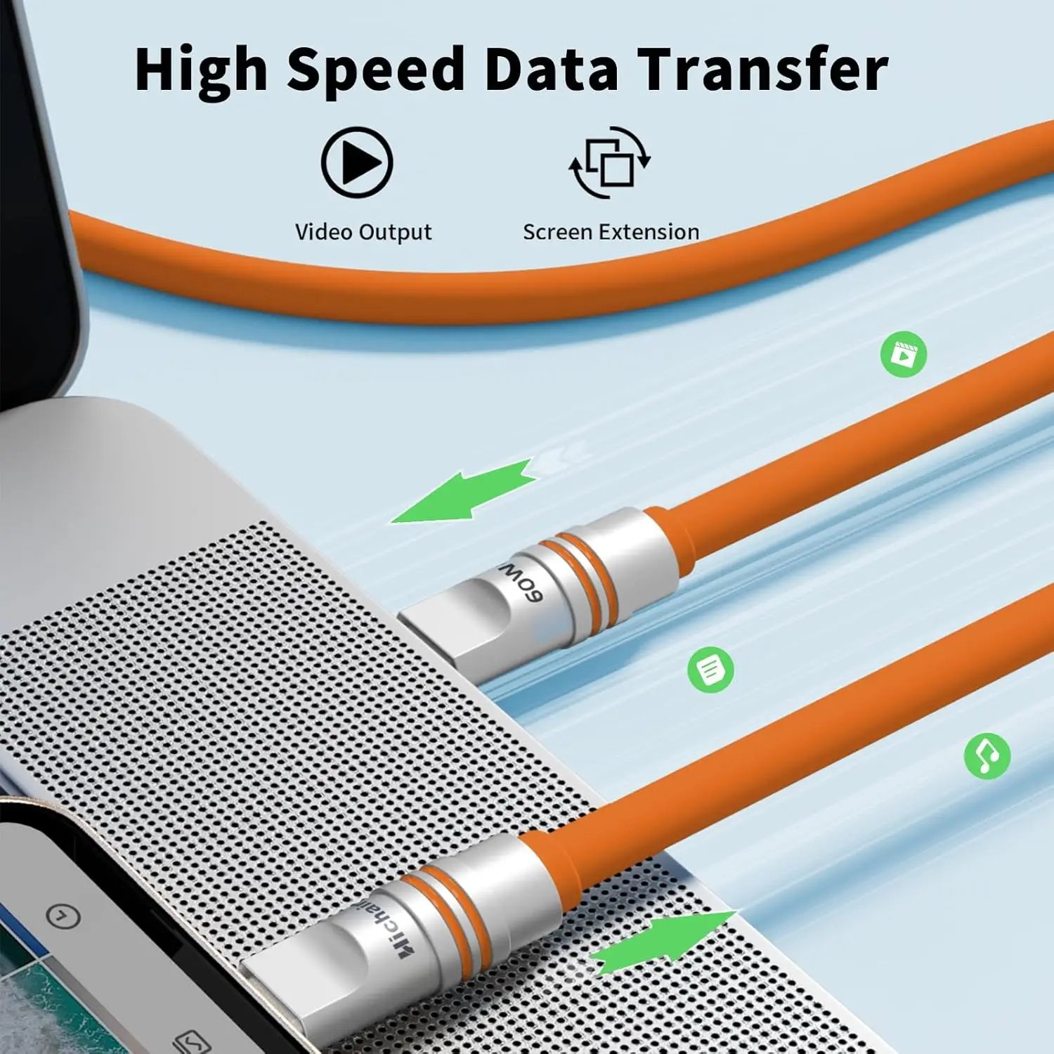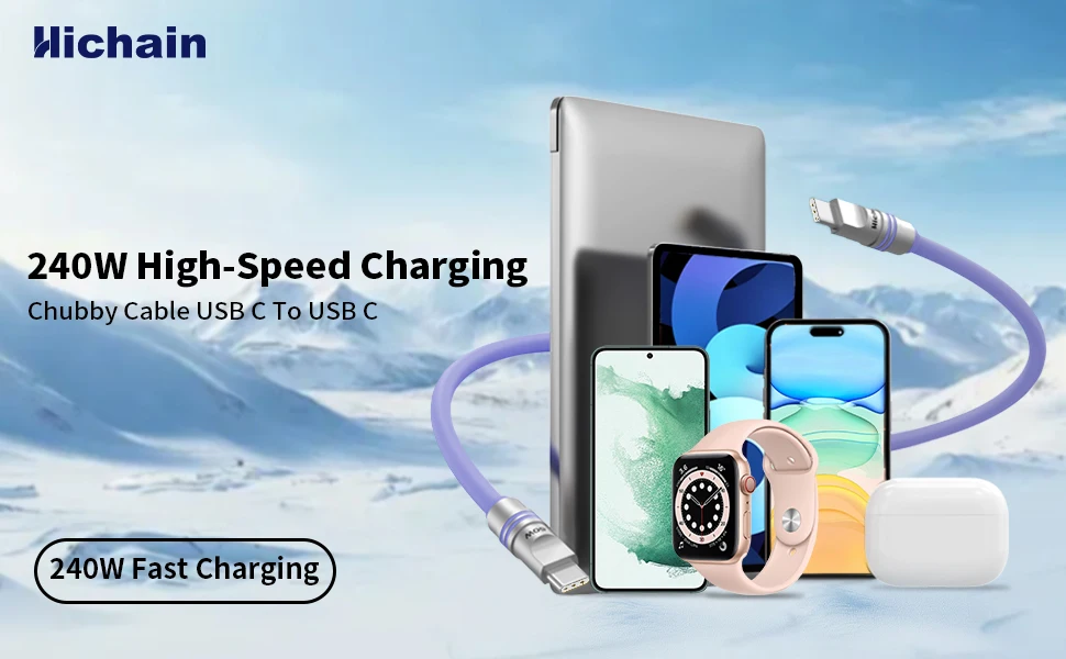 Hichain PD240W USB C Fast Charging Cable Soft Silicone Colorful Type to C Cable For iphone Laptop Tablets Earphones 1.2M/2M