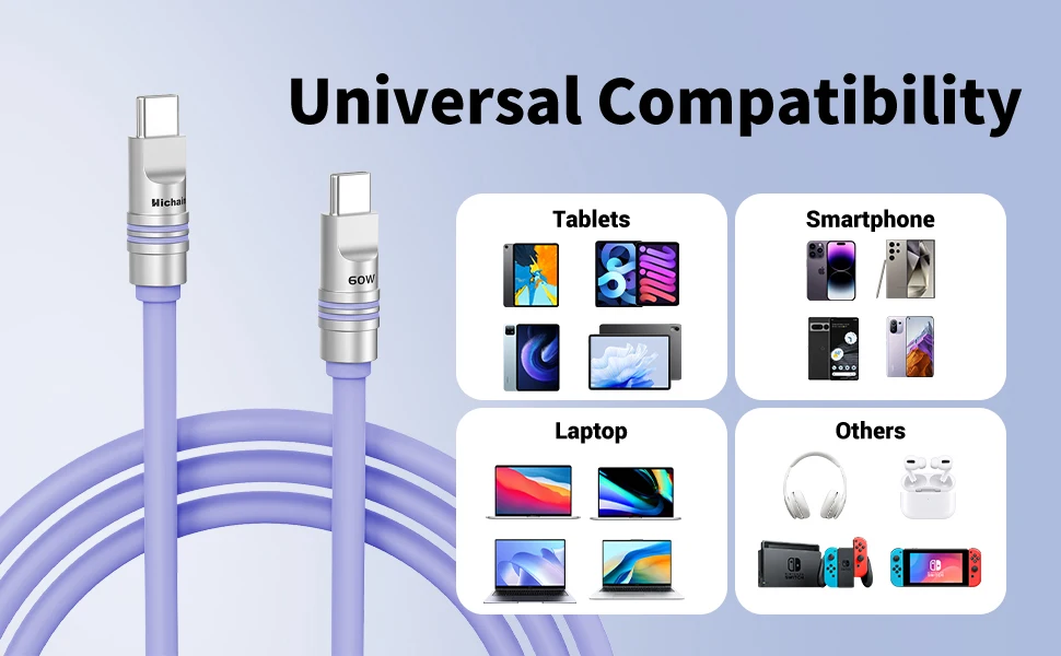 【Universal Smart Compatibility】The built-in E-Marker chip intelligently negotiates the optimal power delivery, supporting PD3.1/3.0, QC4.0, AFC, and SCP protocols. This fast charging usb-c cable safely powers a wide range of Type-C devices, from smartphones to powerful laptops and tablets. The usb c to usbc cable also supports 480Mbps high-speed data transfer, letting you sync files without unplugging. A truly versatile phone charging cable cord for all your needs.