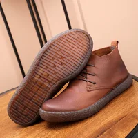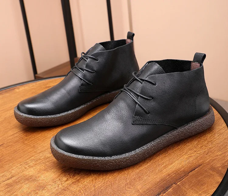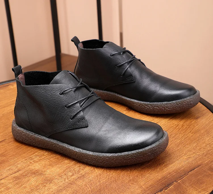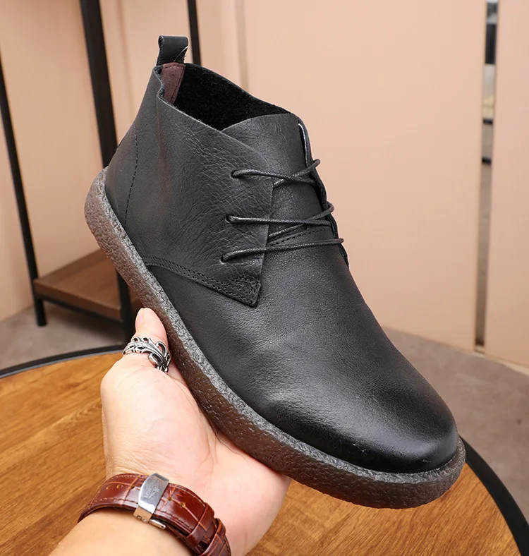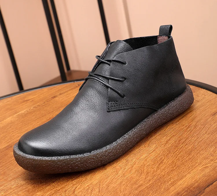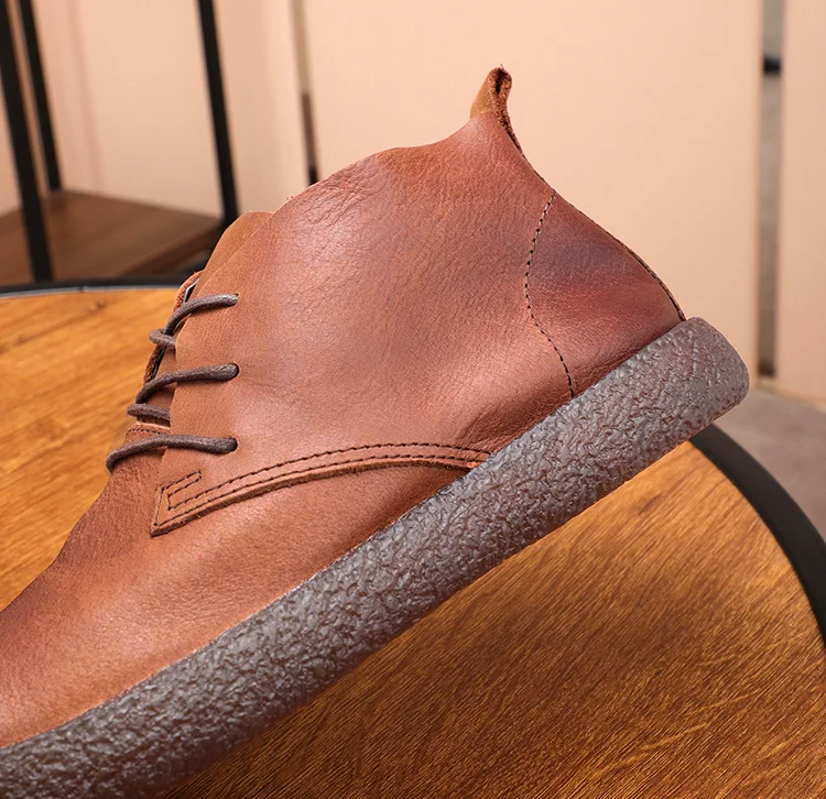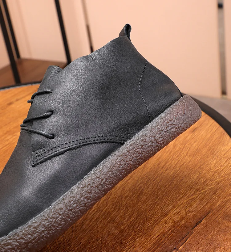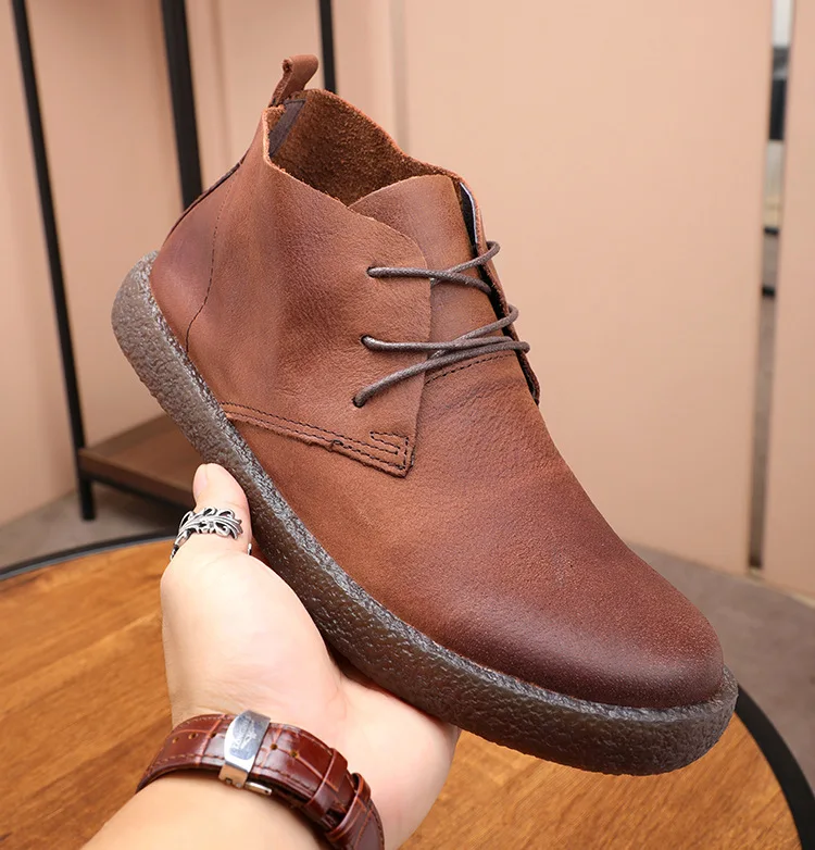 High Ankle Casual Walking Sneakers Top Layer Cowhide Soft Leather TPR Sole Men’s Botas Spring Short Boots Outdoor Trekking Shoes