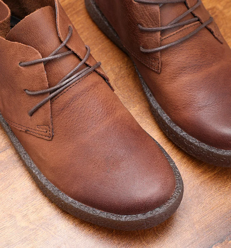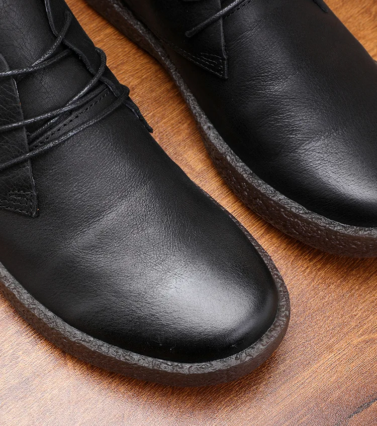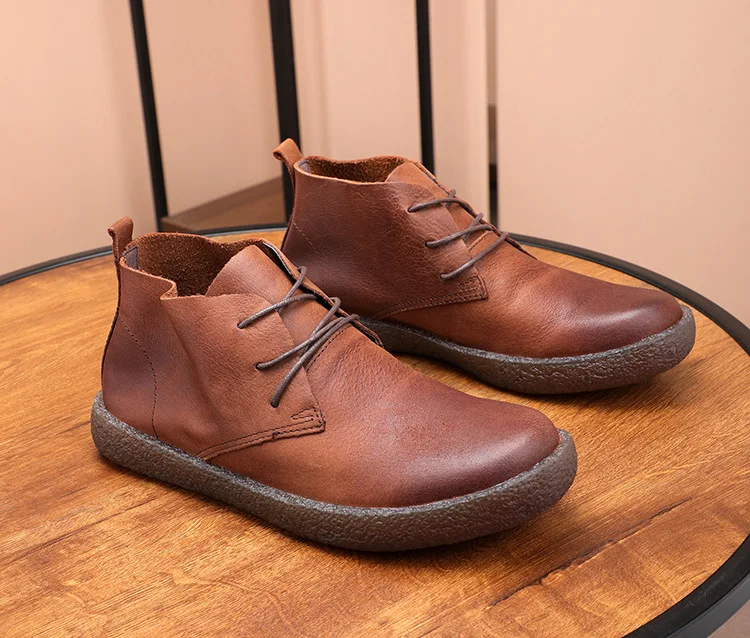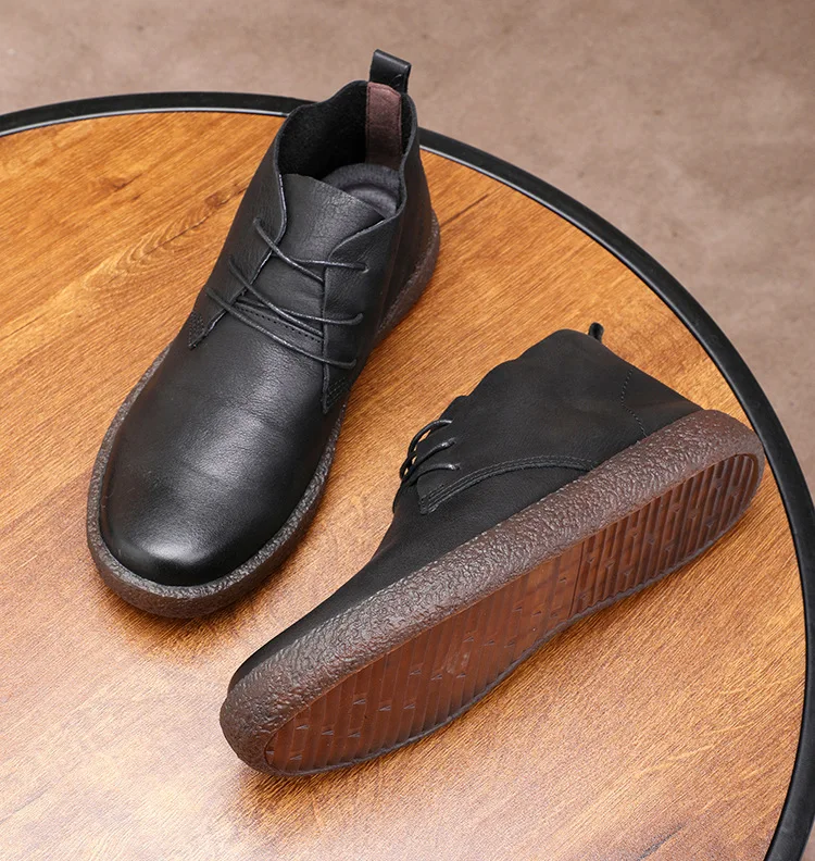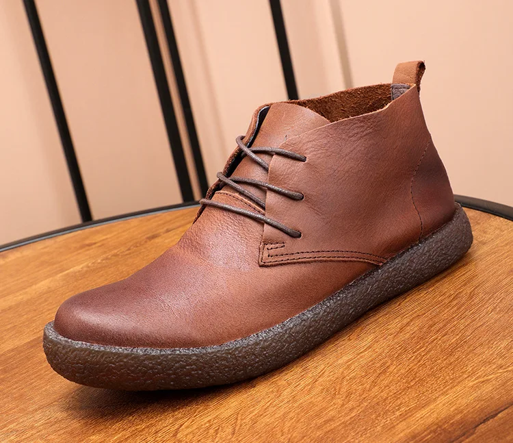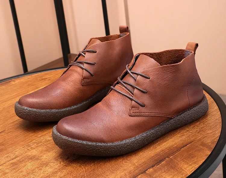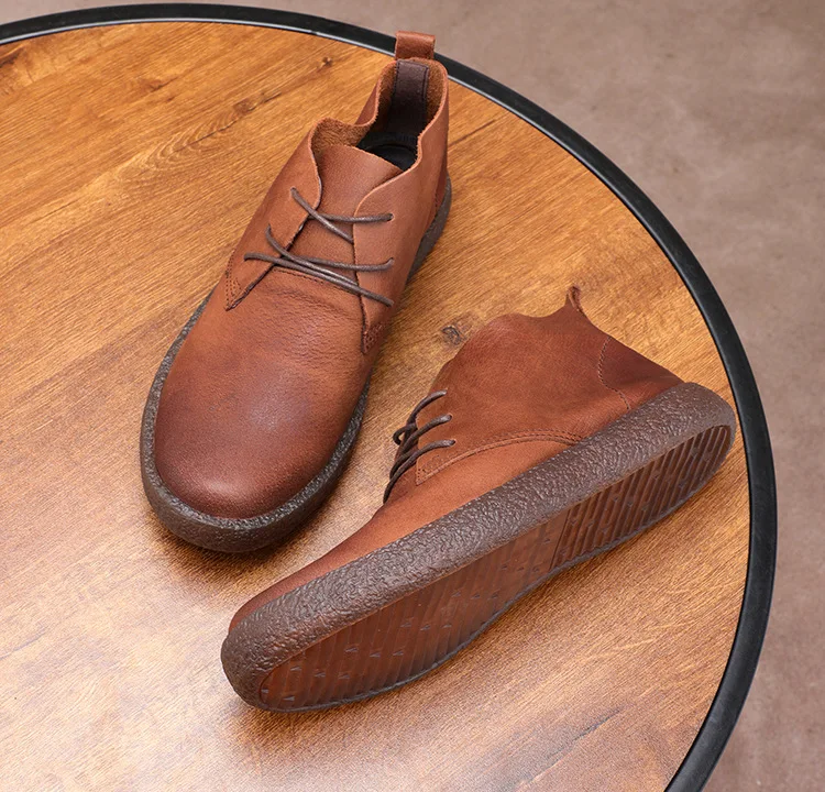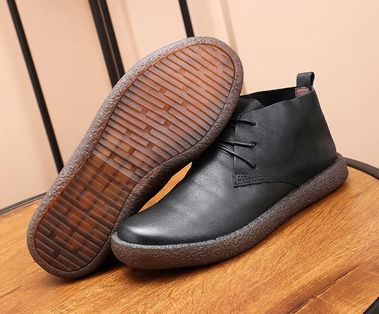 High Ankle Casual Walking Sneakers Top Layer Cowhide Soft Leather TPR Sole Men’s Botas Spring Short Boots Outdoor Trekking Shoes