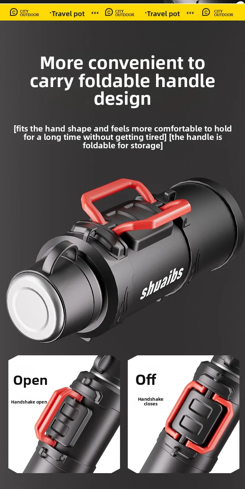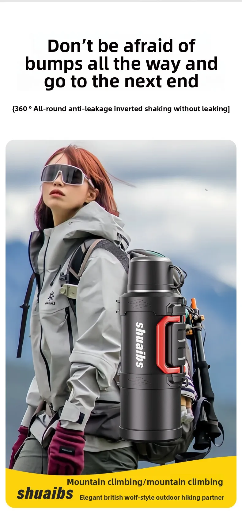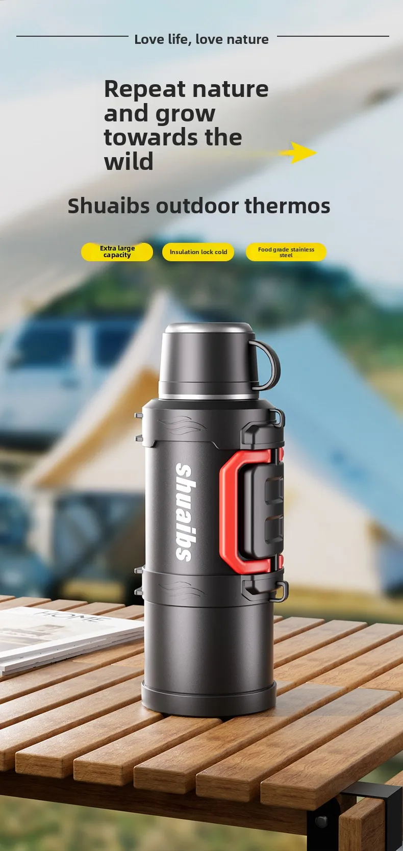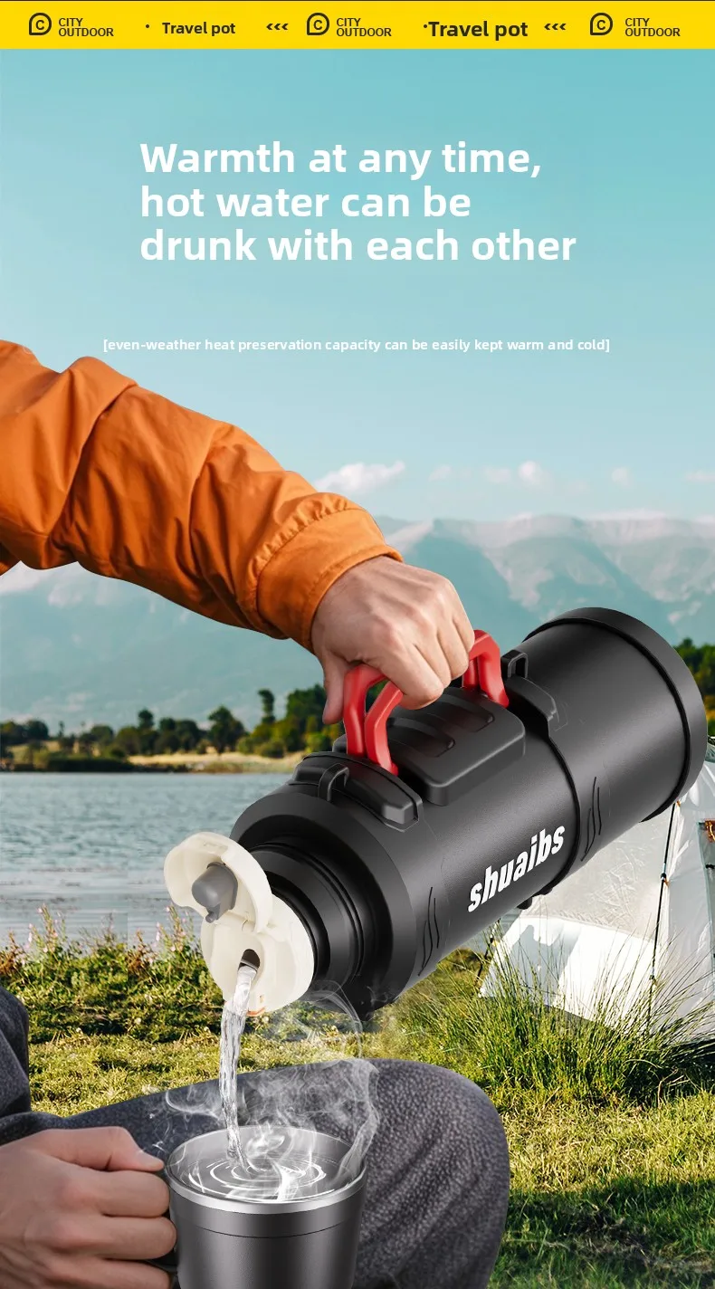 High capacity thermos kettle stainless steel car outdoor travel hiking thermos cup tea making sports water kettle