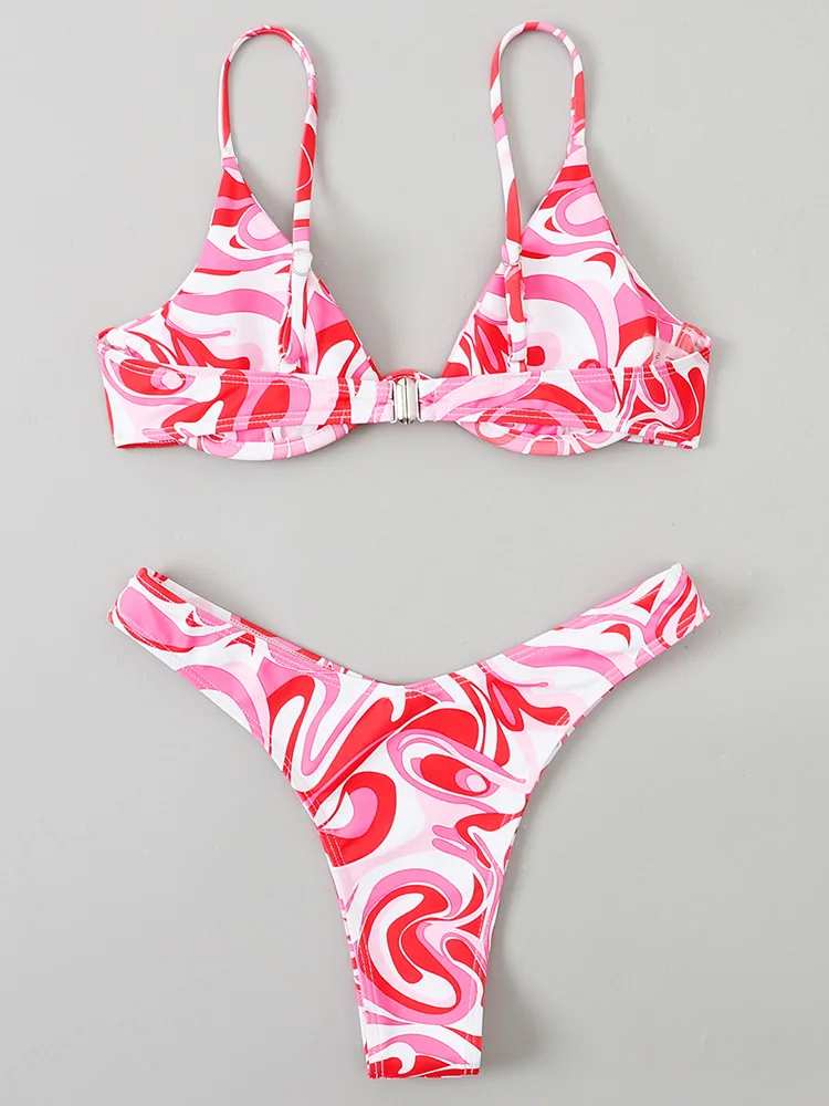 High Cut V-bar Underwired Bikini Women Swimsuit Female Micro Thong Swimwear Two-pieces Bikini Set Push Up Bathing Suit Swim Lady