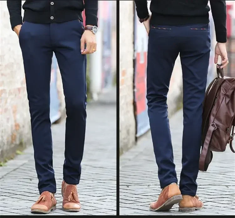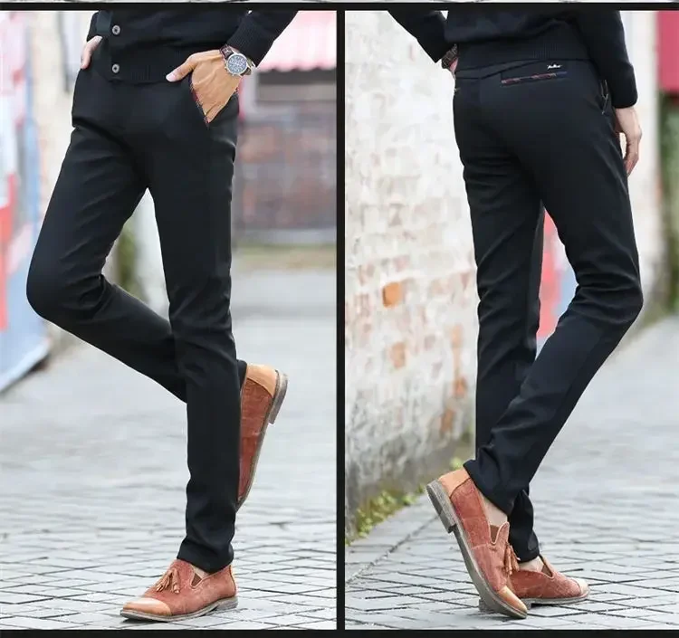 High Elastic Skinny Suit Pants for Men Business Office Trousers Korean Style Black Blue Casual Pants